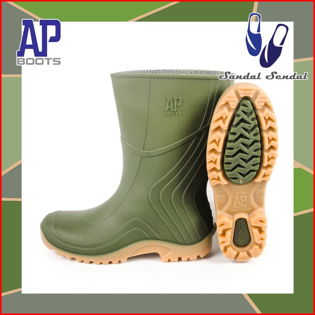 Sepatu Boot Pendek Ap 2007 Ap Boots Hijau Karet Lokal Anti Air Slip Perkebunan Pertanian