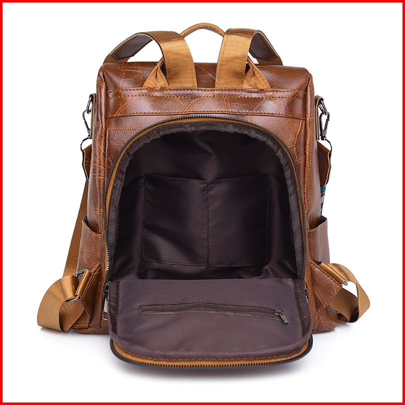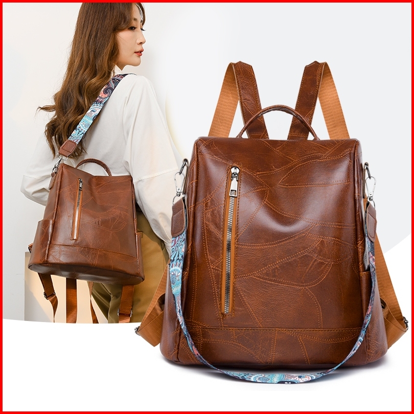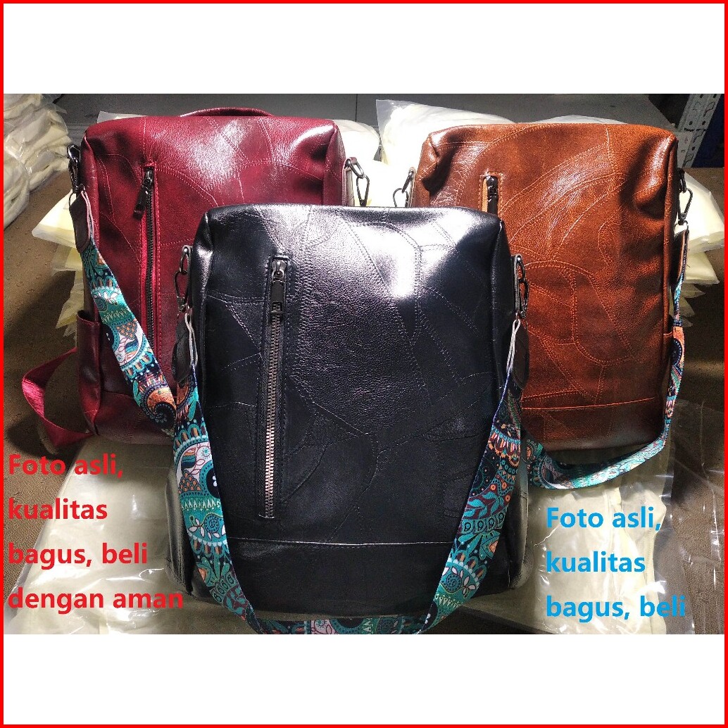 Ransel Wanita Terbaru Tas Resleting Belakang Tahan Air Waterproof Leather Kulit Perempuan Backpack Sling Shoulder Multif