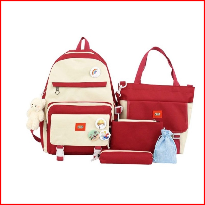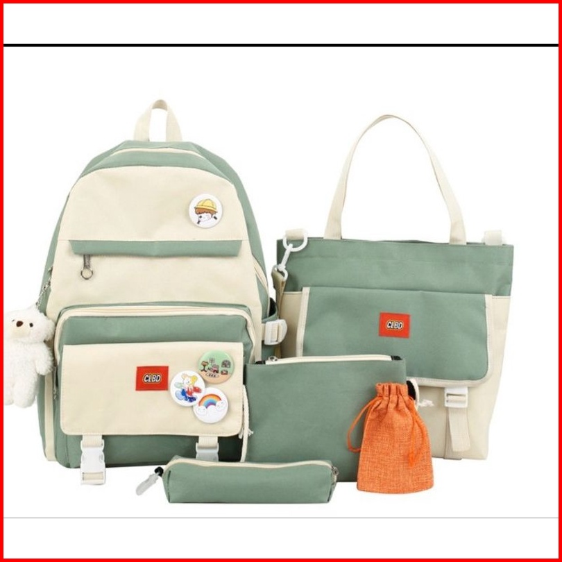 Backpack Korean Style Tas Ransel Import Set 5 In 1. Tas Punggung Wanita Tas Sekolah