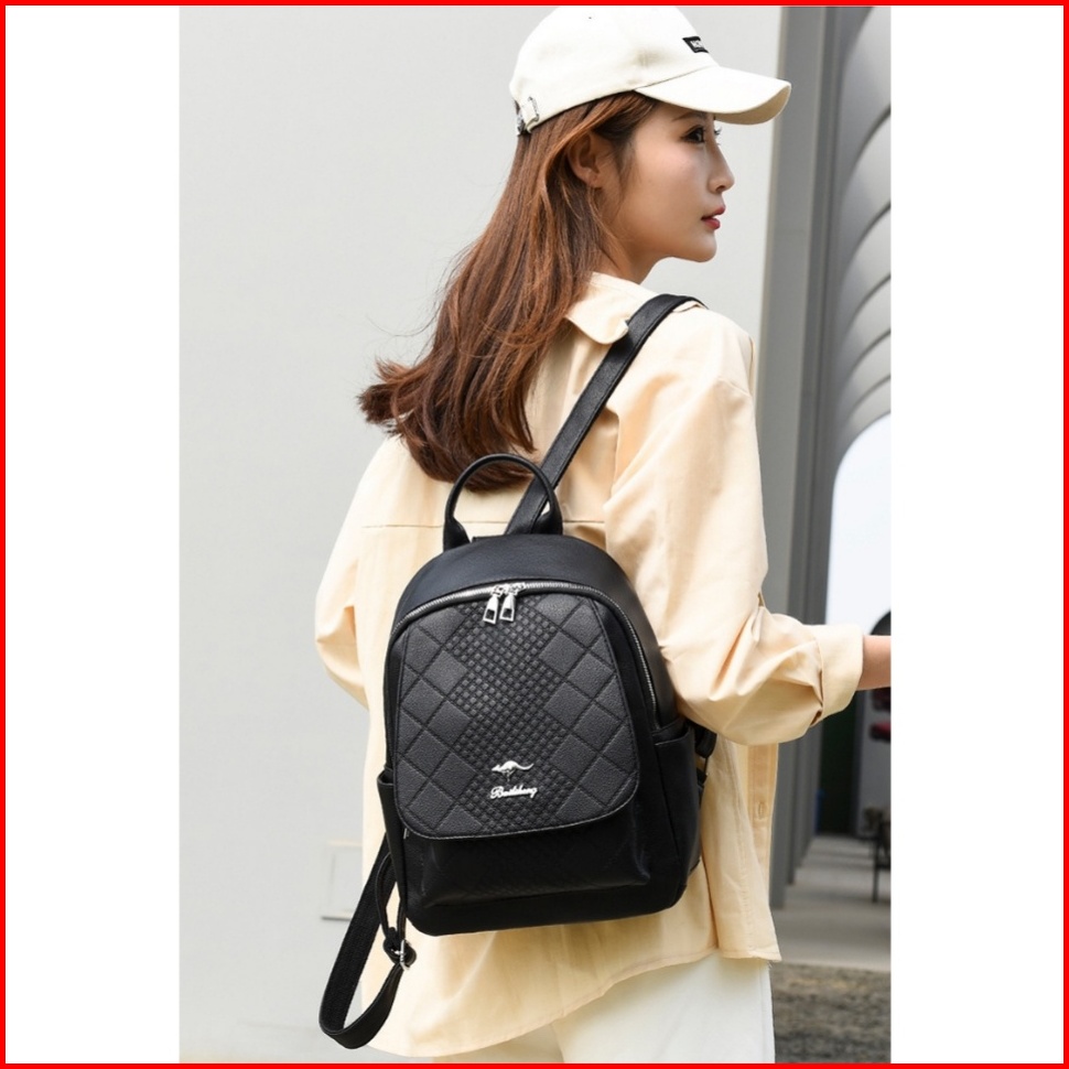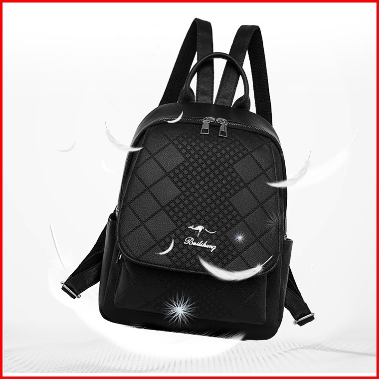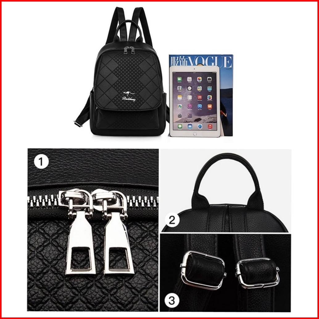 Tas Ransel Wanita Backpack Kulit Hitam Laurena Ta369b5 Sekolah Kuliah Gendong Punggung Batam