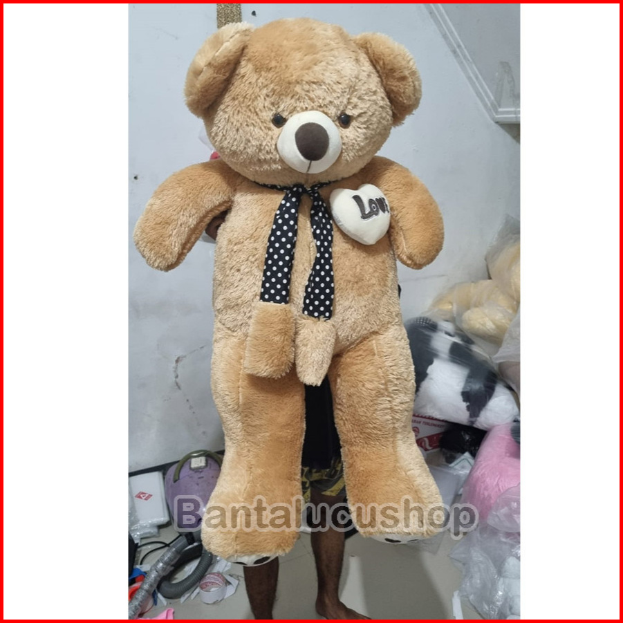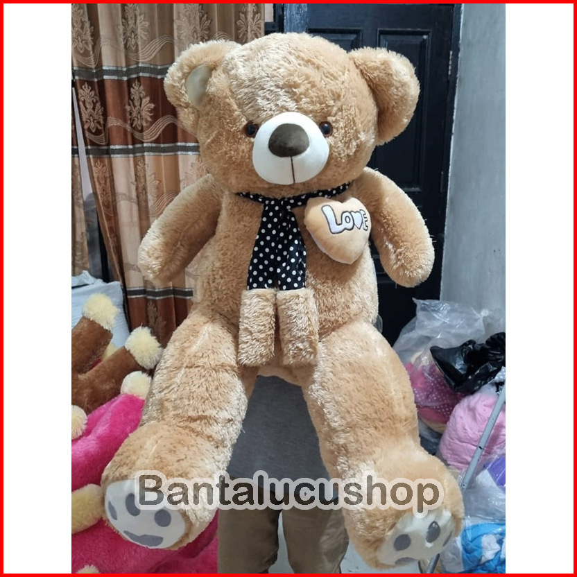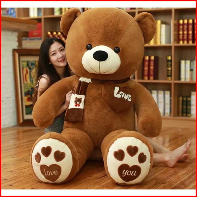 Boneka Teddy Bear Fluffy Syal Telapak Love Super Jumbo 1.2 Meter Bordir Sni