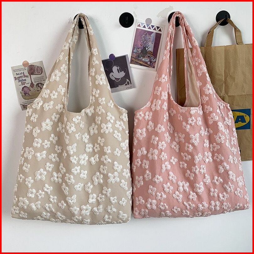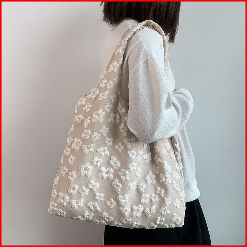 Ready Stock Yien Kt01 - Totebag Make Up Pouch Flower Lace Totebag Bordir Bunga Tas Bahu Wanita Import Pouch Kosmetik Coc