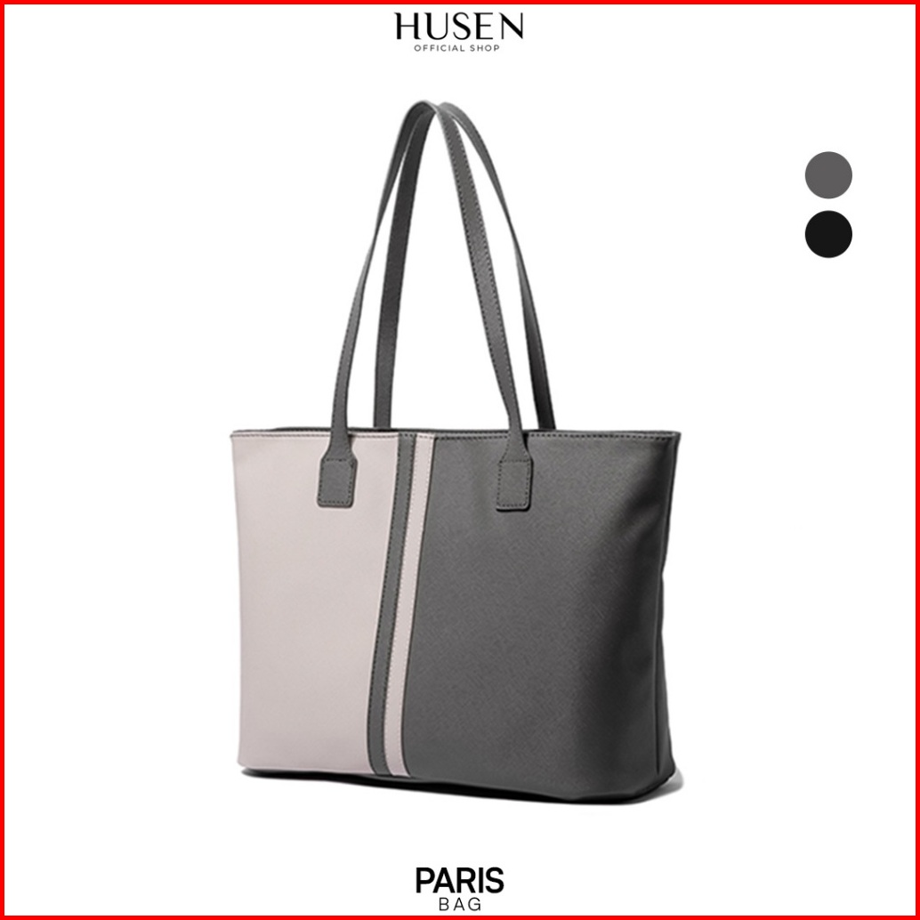 Husen Totebag Wanita Paris Bag Tas Kantor Kondangan Shoulder Bag Resleting Kekinian Original Import