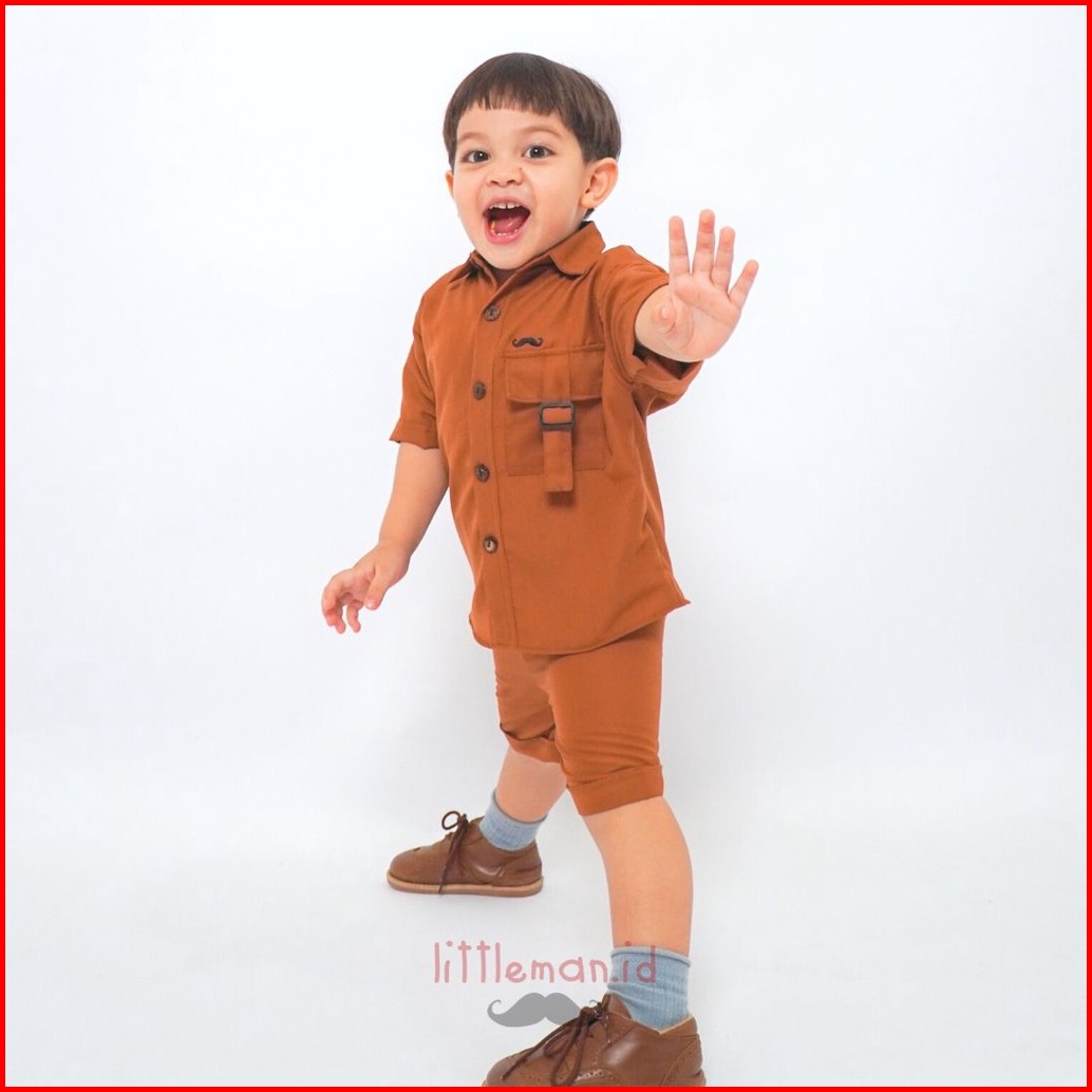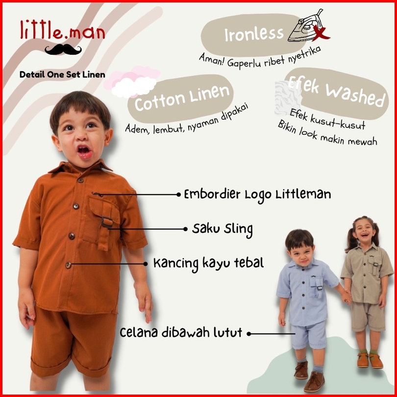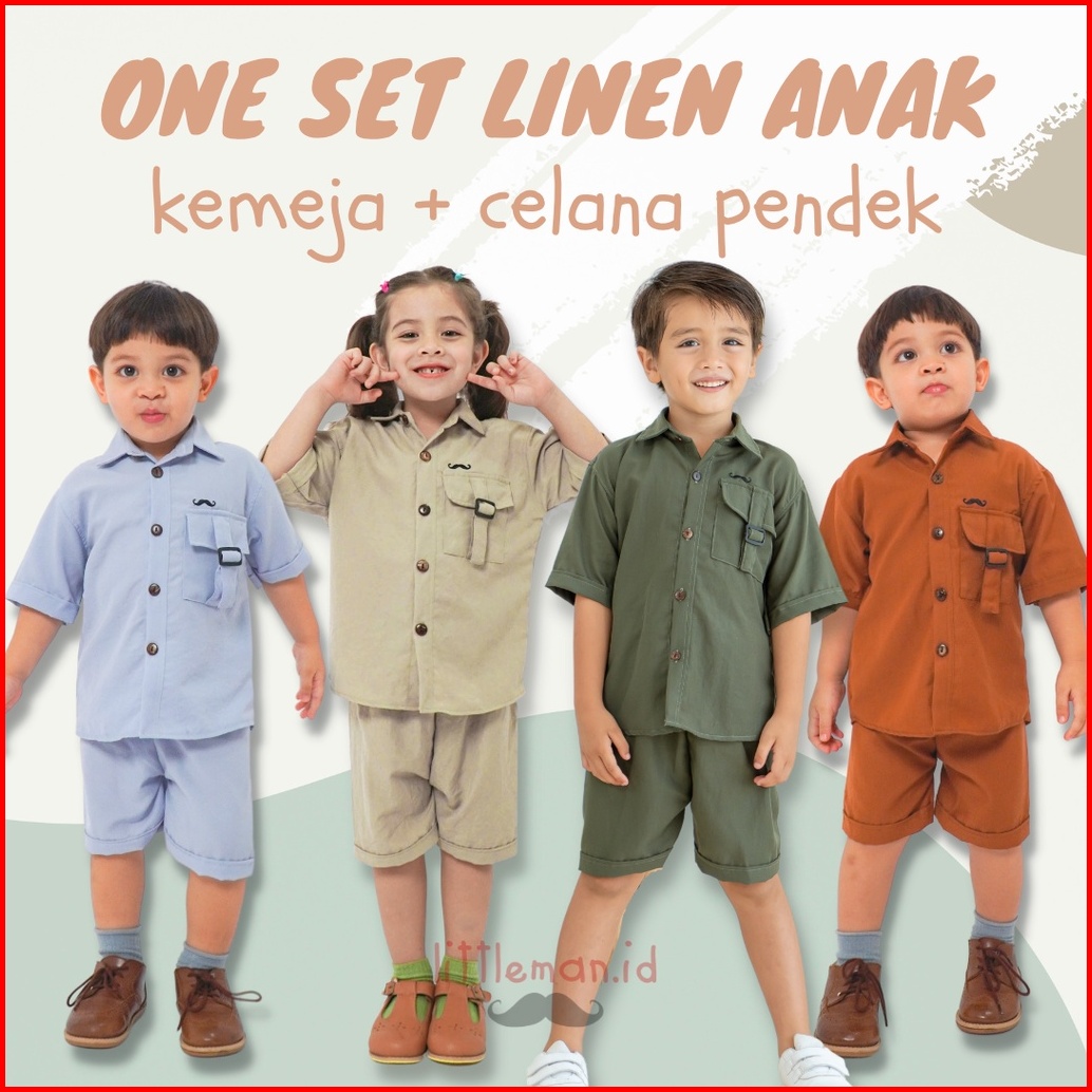 One Set Linen Anak Atasan Kemeja Celana Pendek Playset Setelan By Littleman.id