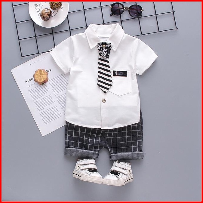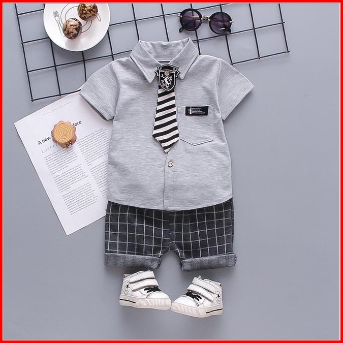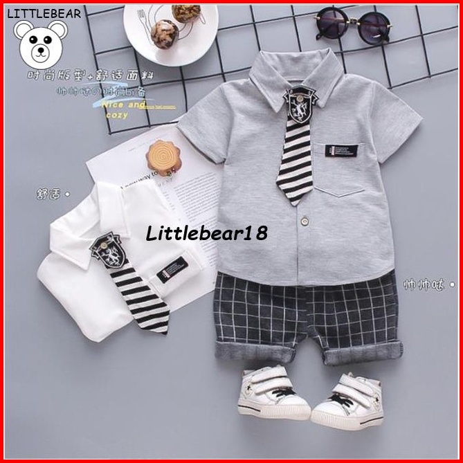 Cuci Gudang Littlebear - Set Pakaian Anak Laki-laki Setelan Baju Kemeja Anak Import Set Baju Anak Cowok Kerah Lipat