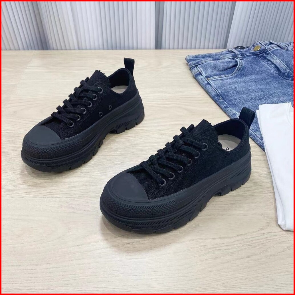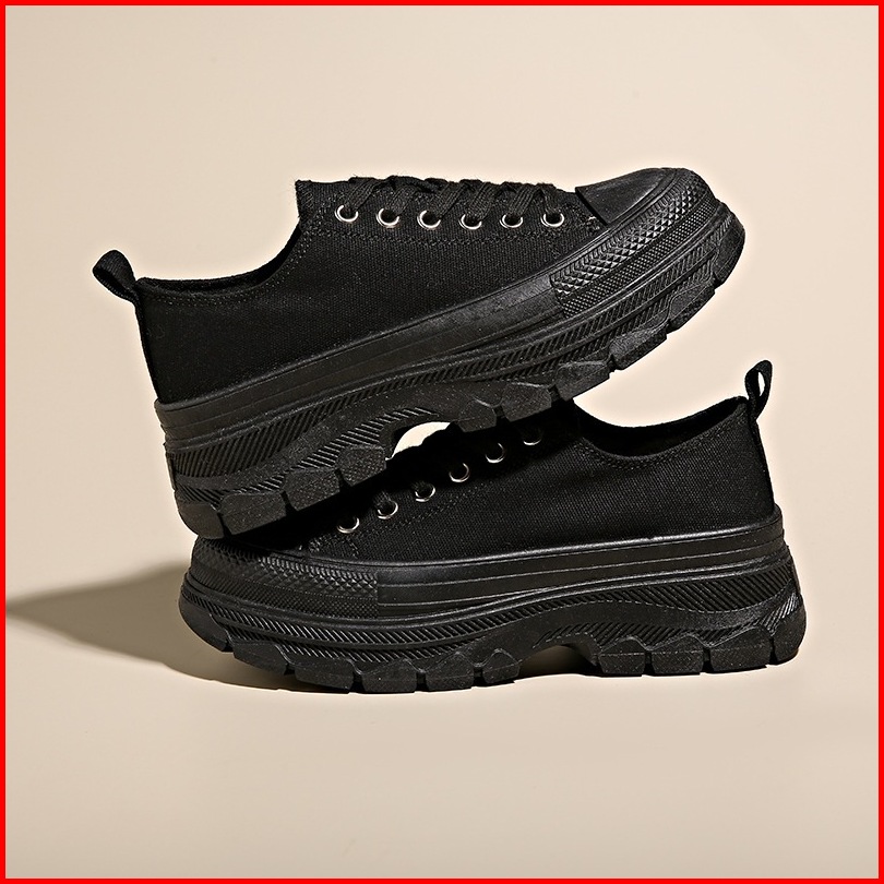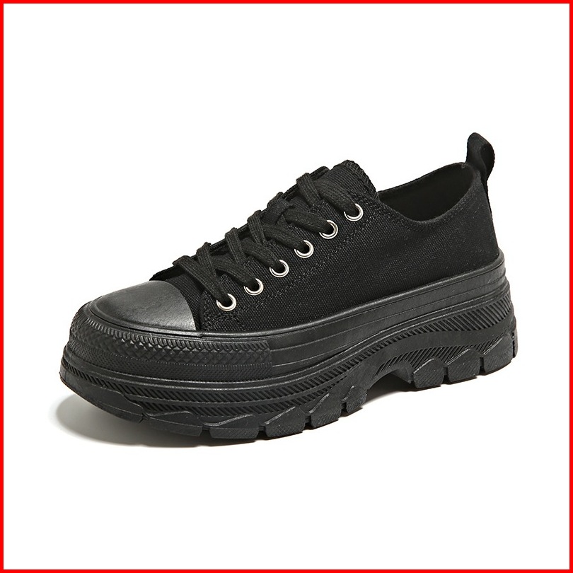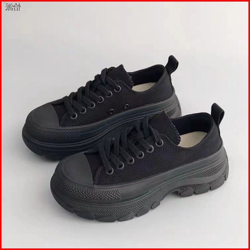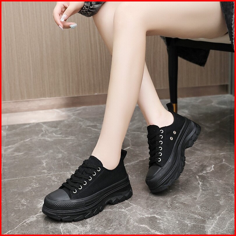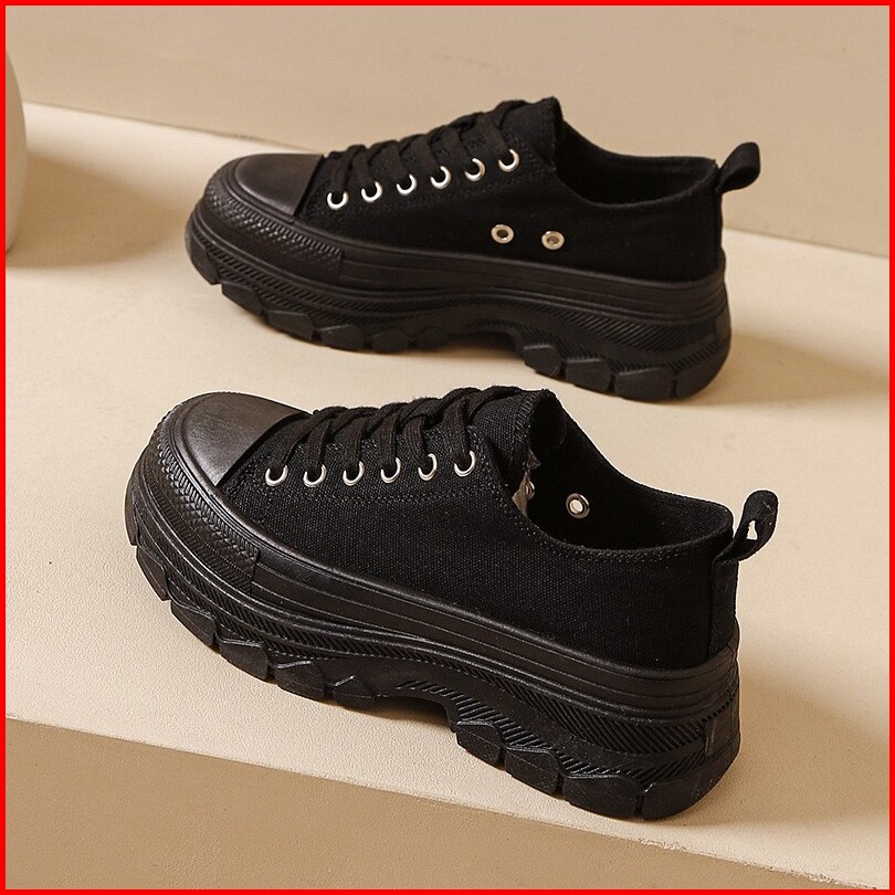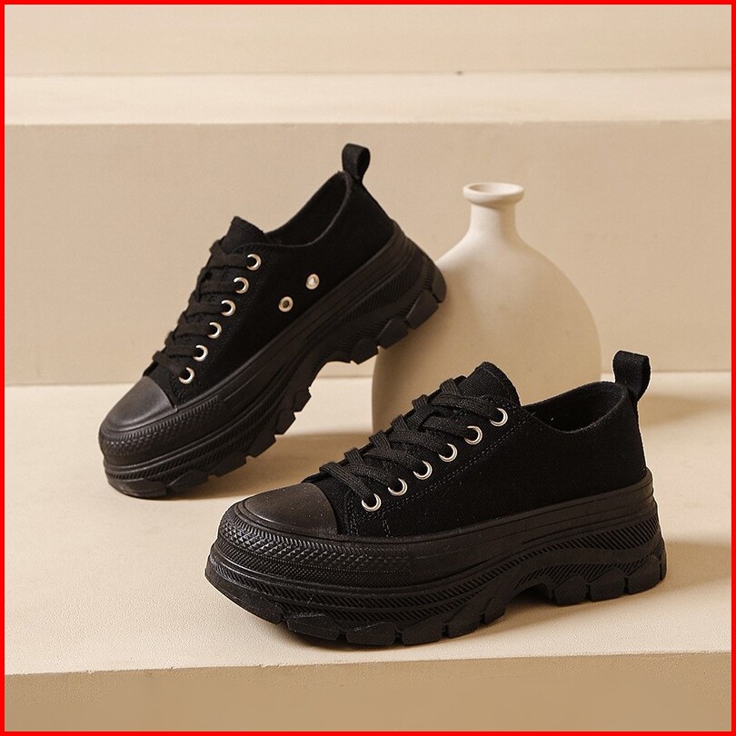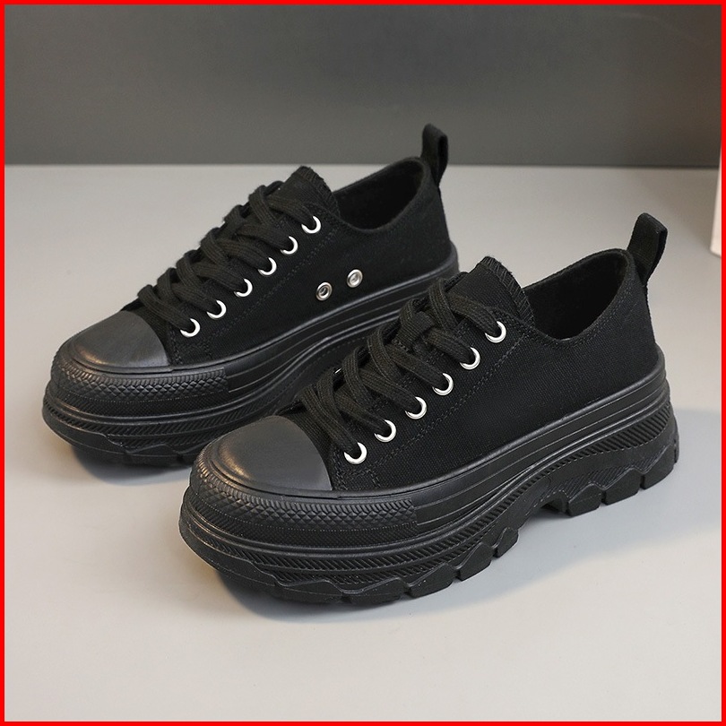Sepatu Sekolah Wanita Hitam Polos Sepatu Sneakers Wanita Bertali Kasual Korea Import Jaemin 141