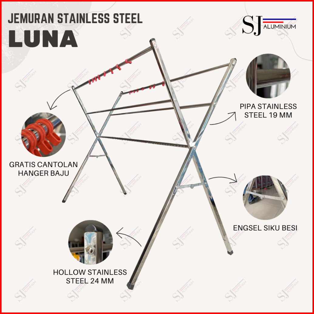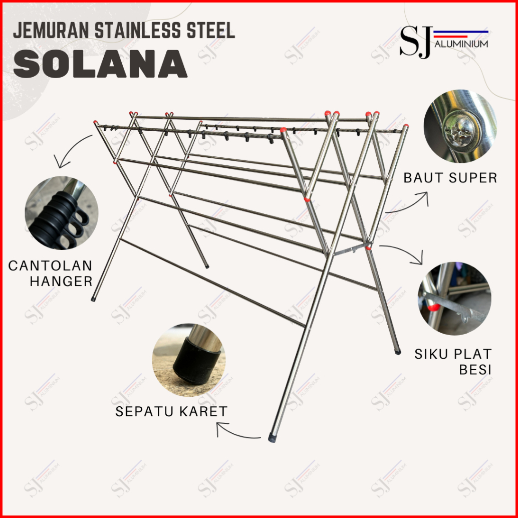 Sja - Jemuran Stainless Steel Jumbo Jemuran Baju Pakaian Handuk Lipat