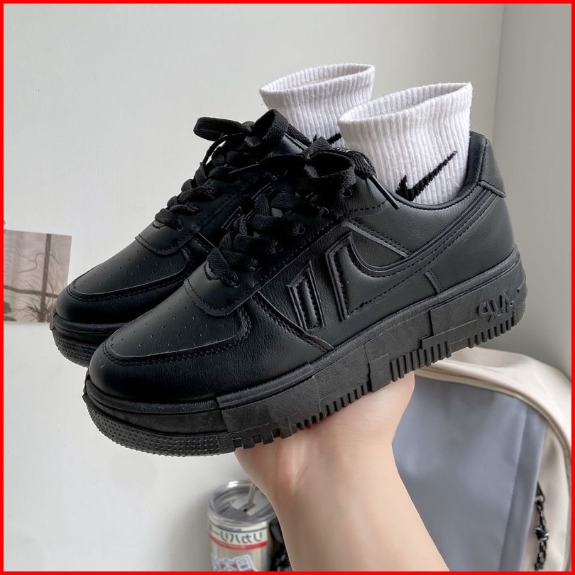 Sepatu Sekolah Wanita Hitam Polos Sepatu Sneakers Wanita Korean Import Ms180