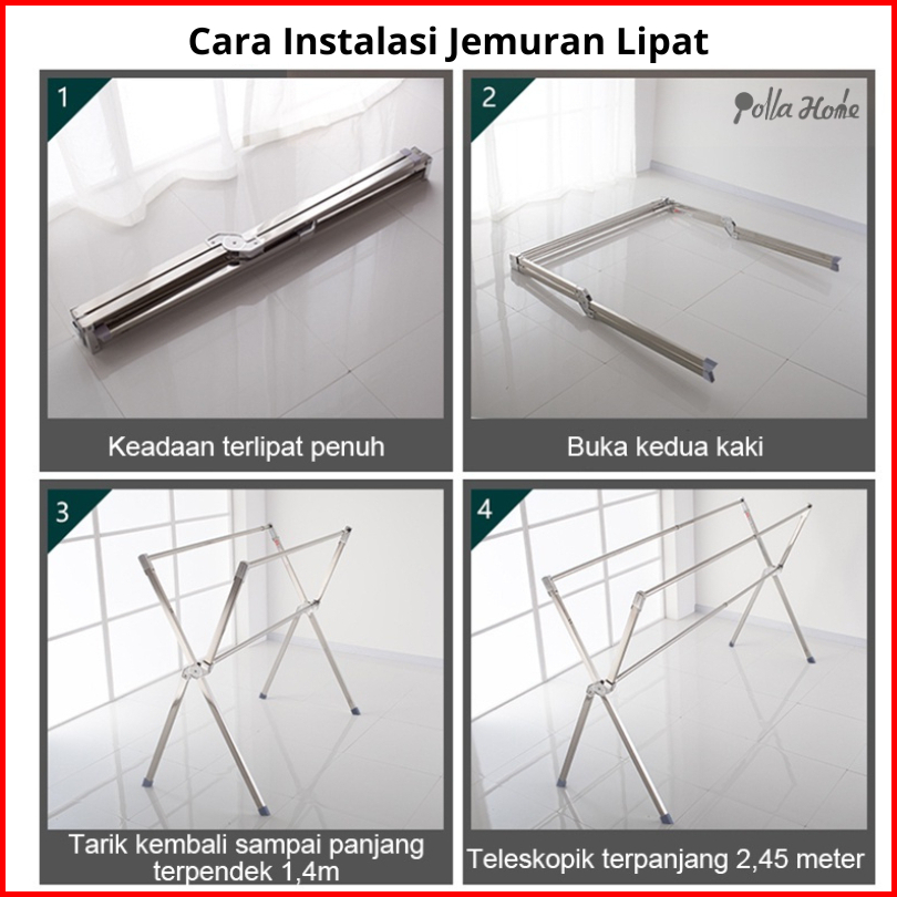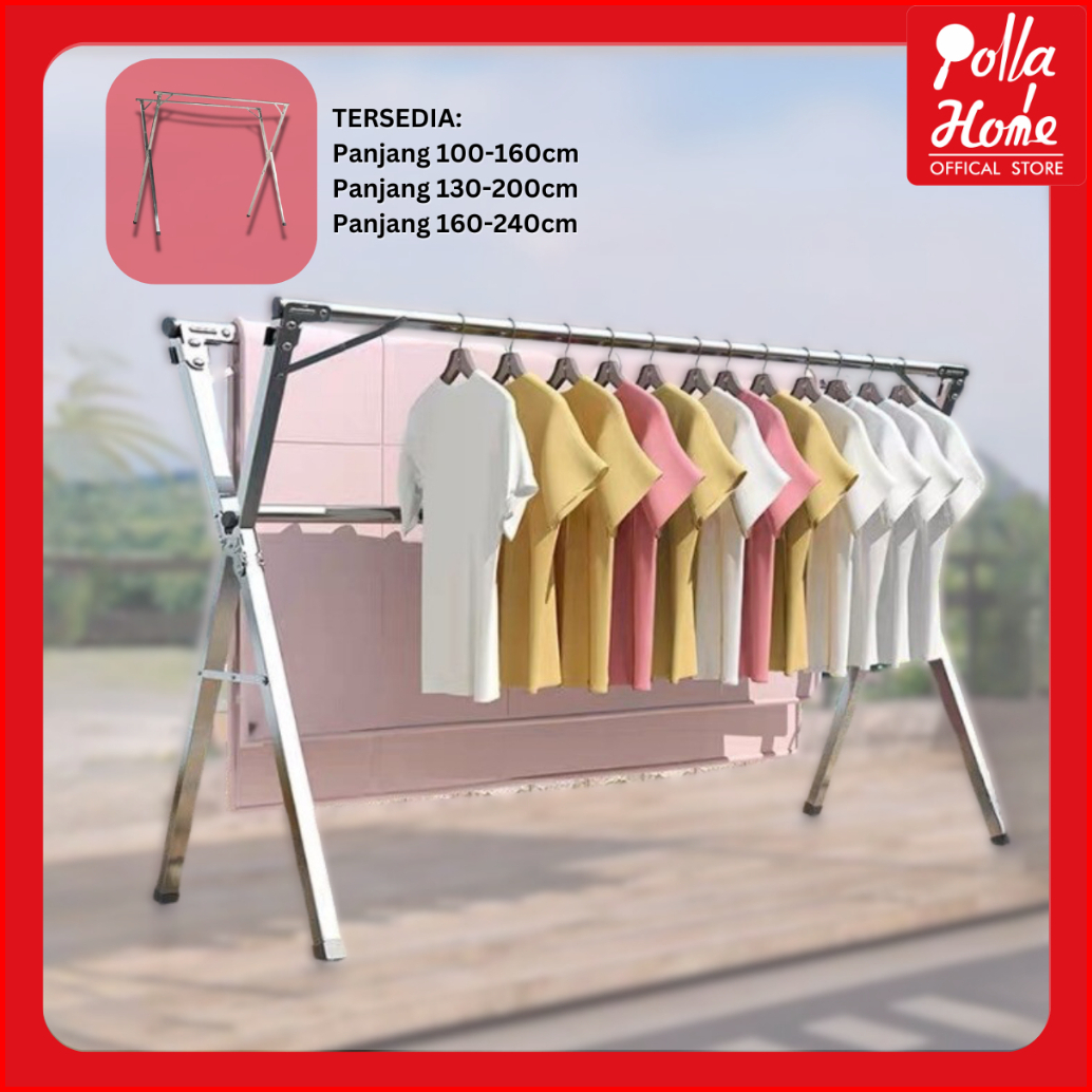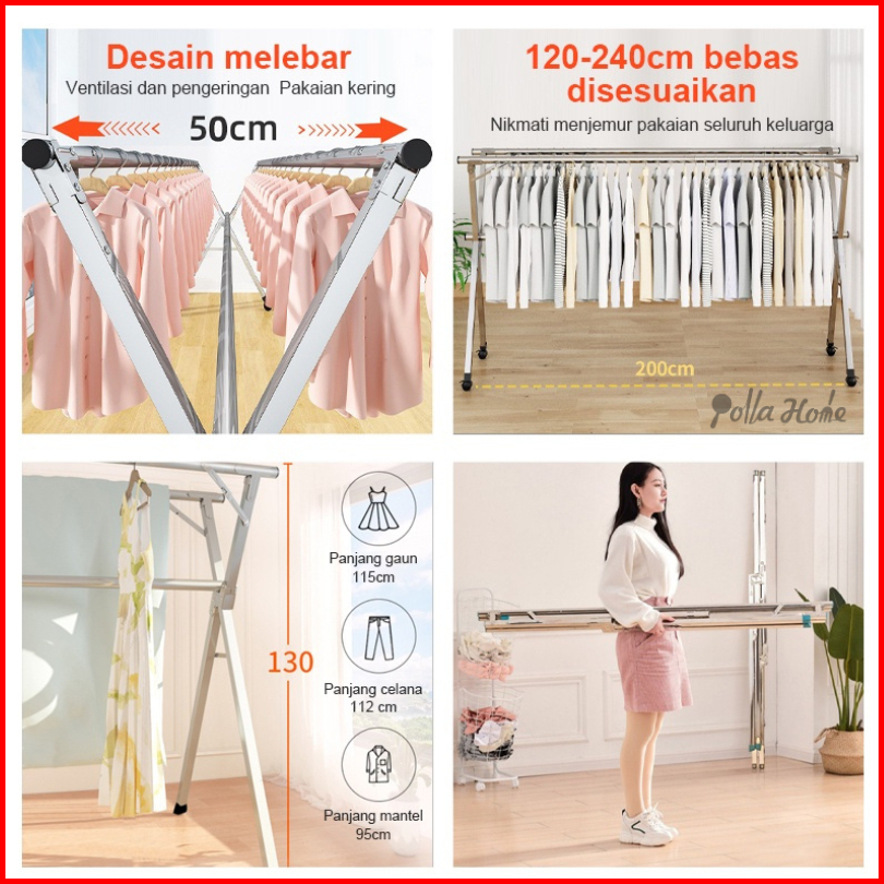 Spesial Ollahom Jemuran Baju Lipat Portable Jemuran Pakaian Jemuran Tahan Karat 160 200 240cm