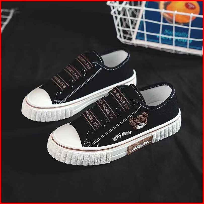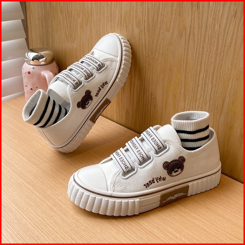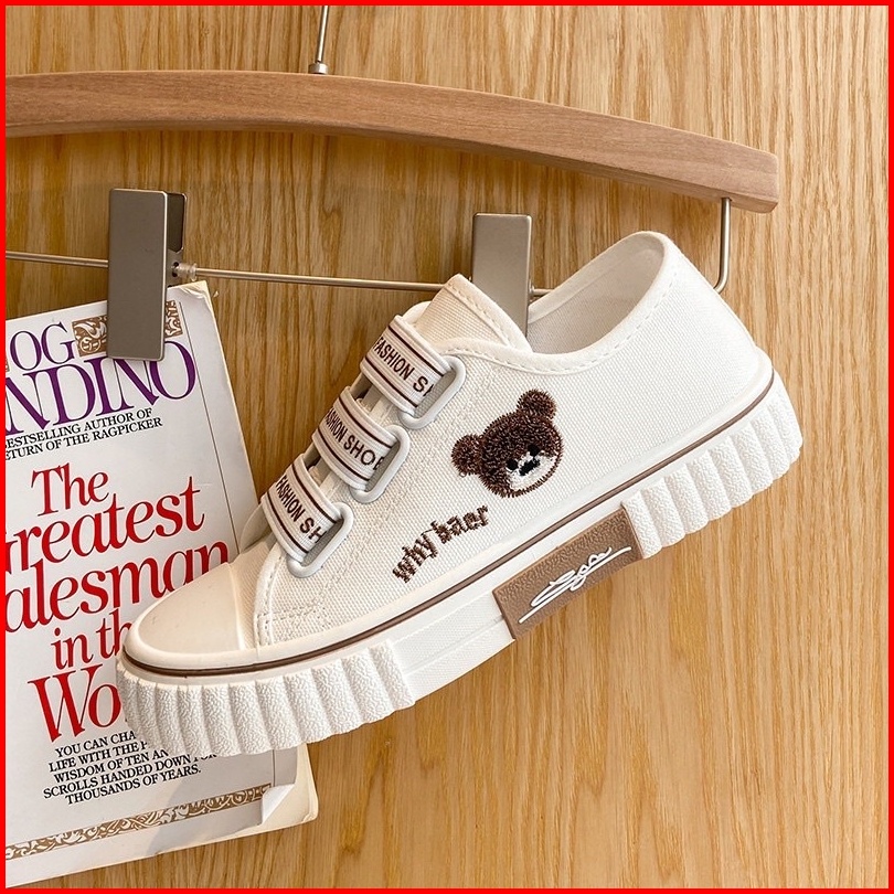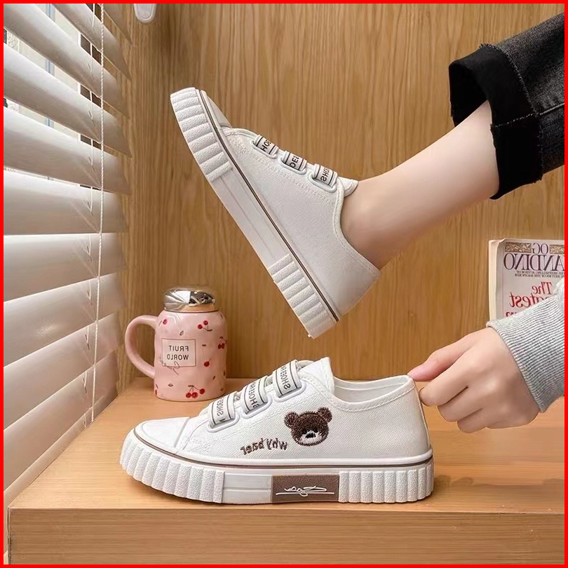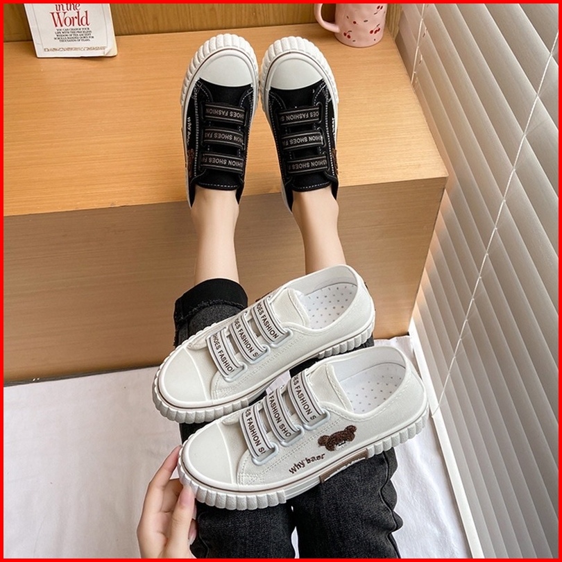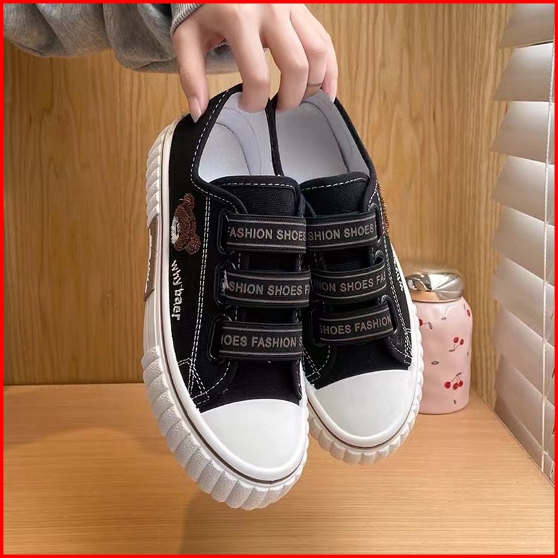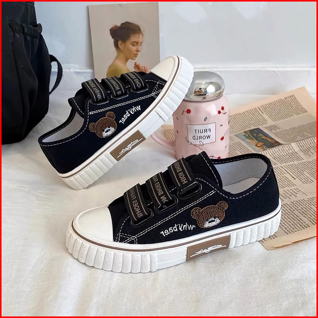 Sepatu Sneakers Kanvas Wanita Import Korean Velcro Bear Ms034