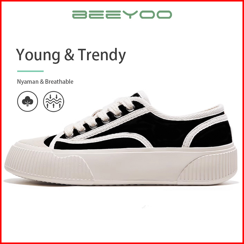 Beeyoo Sepatu Sneakers Canvas Tali Sepatu Formal Sepatu Sekolah Casual Fashion Cewek Wk210