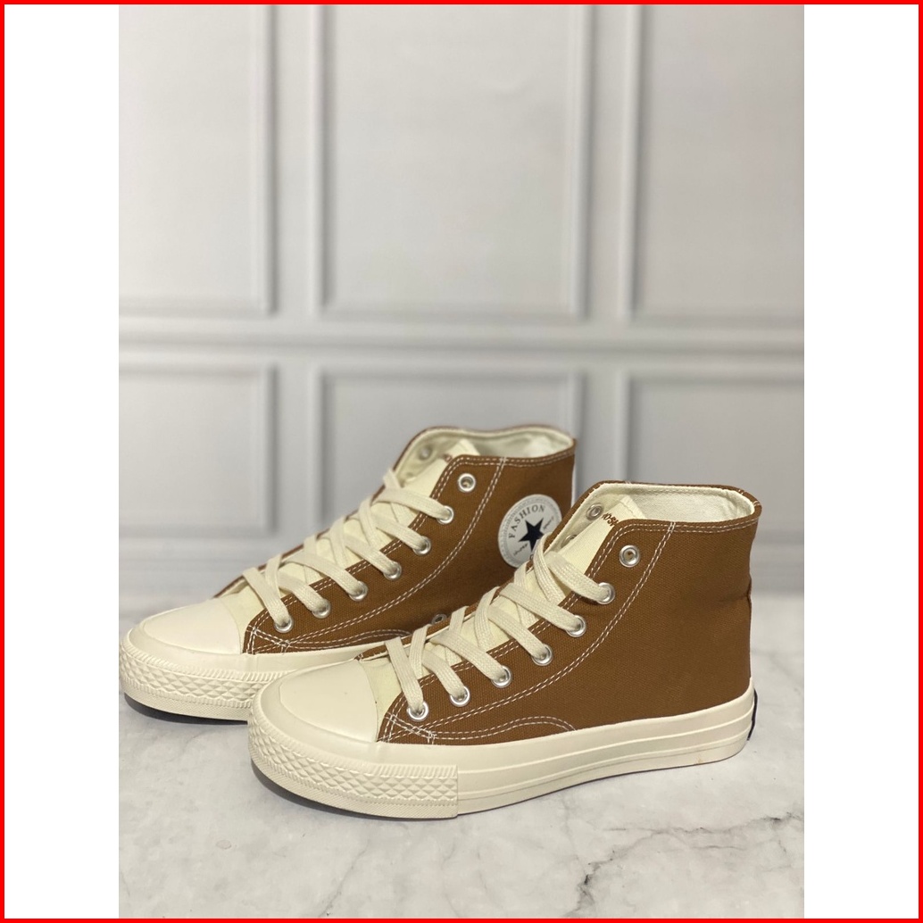 Sepatu Wanita Import Canvas Tinggi Wanita Brown Polos Import Model Korean Ukuran 36-40