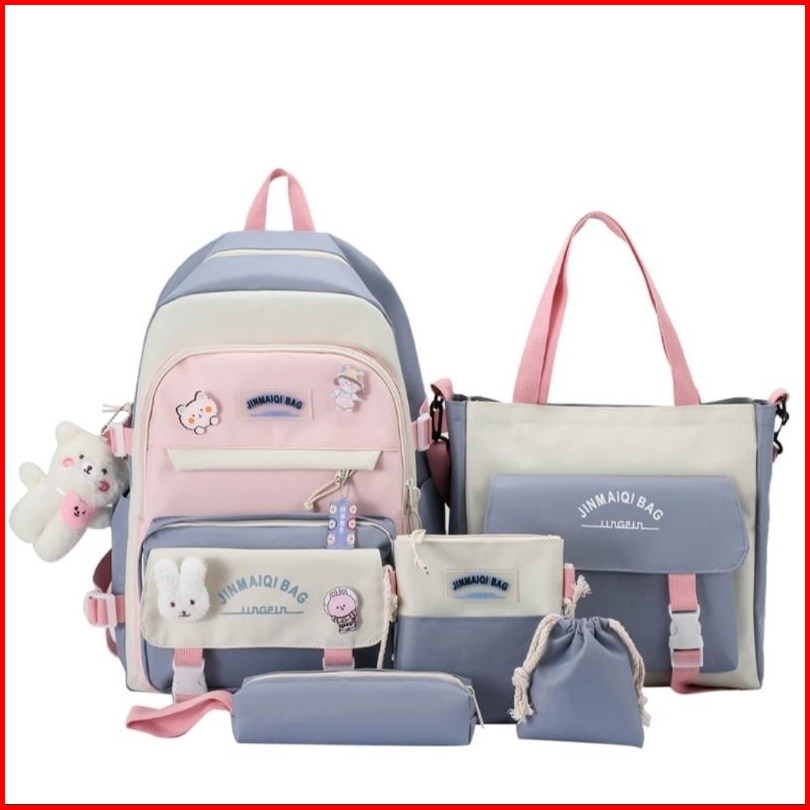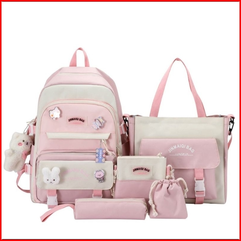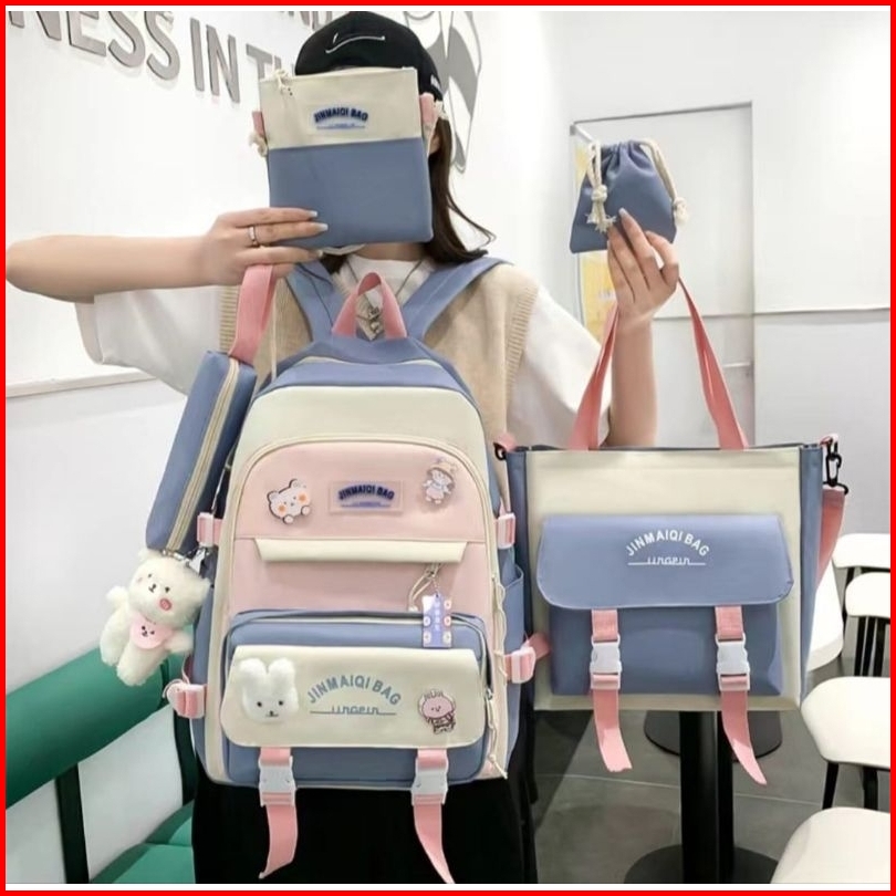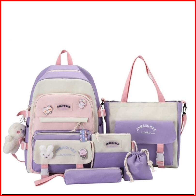 Backpack Korean Style Tas Ransel Import Set 5 In 1. Tas Punggung Wanita Tas Sekolah