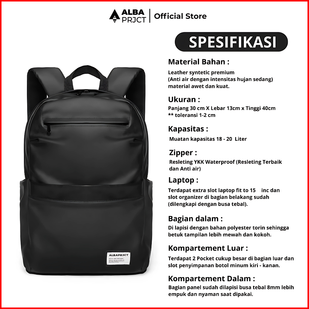 Alba Project - Backpack Lisbon - Tas Ransel Laptop Pria Wanita Anti Air Sekolah - Kerja - Laptop Kulit Pu Waterproof