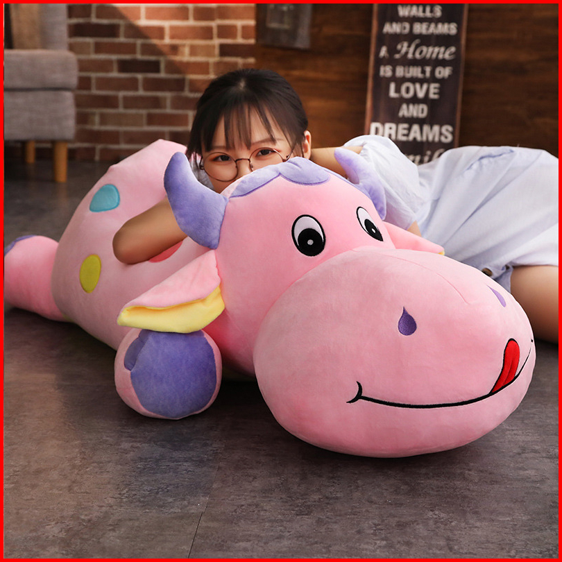 Boneka Sapi Lying Gemoy Lucu Mainan Bantal Tidur Bahan Halus Hadiah Ulang Tahun Anak Ukuran 40cm