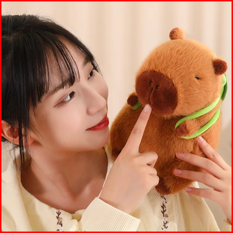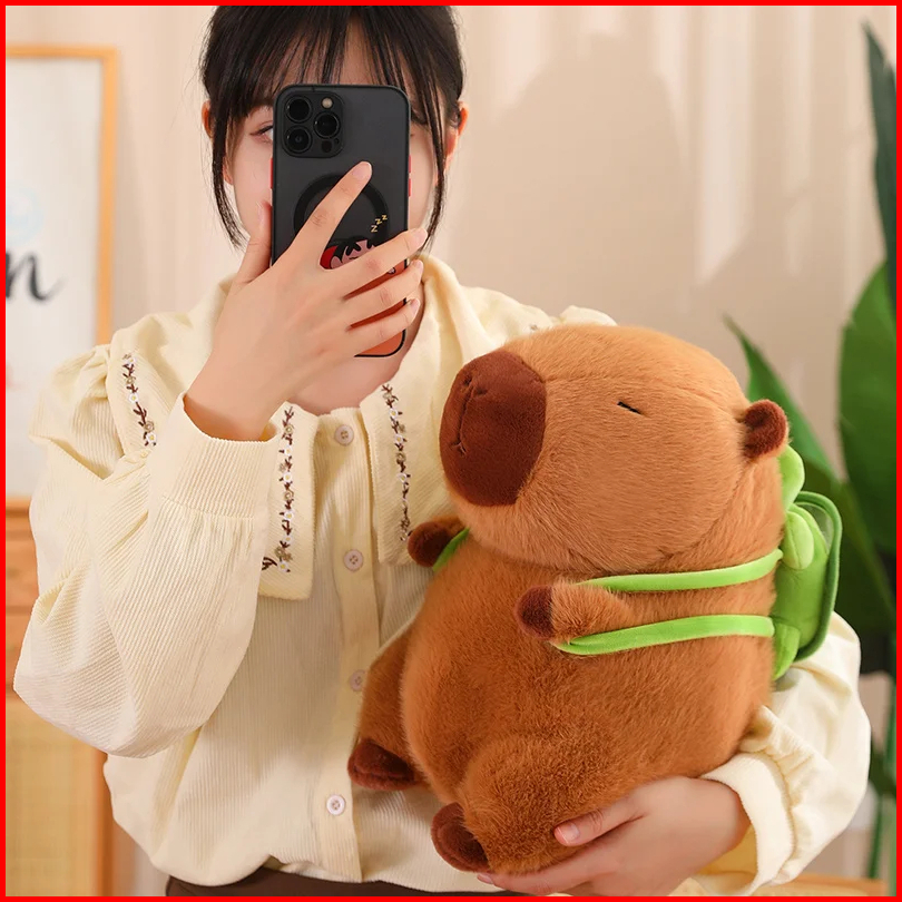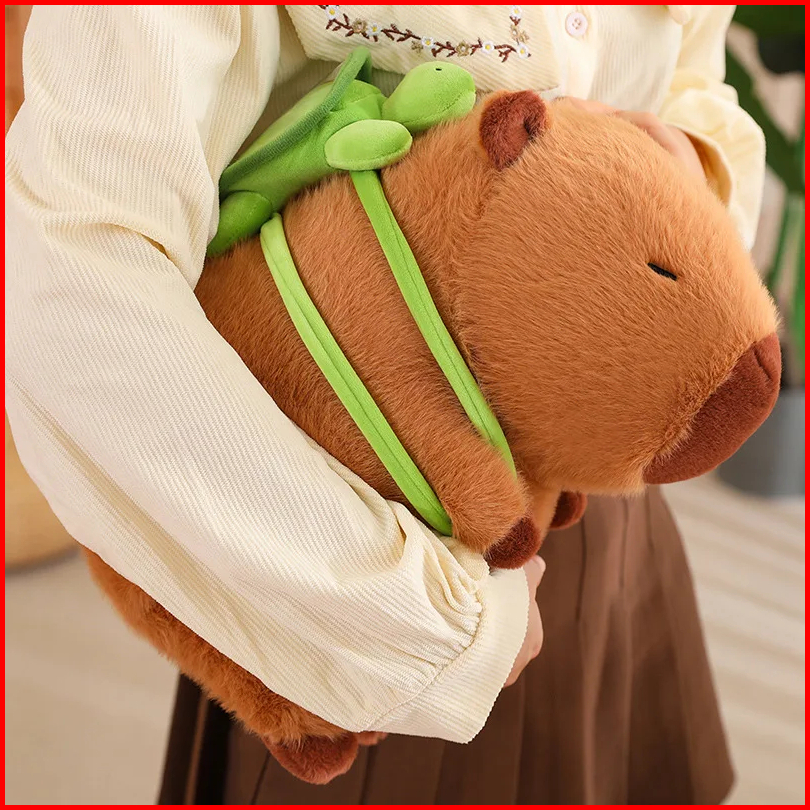 Boneka Capybara Pluffy Lucu Dengan Tas Ransel Kura Kura Size 35cm Bahan Halus Lembut