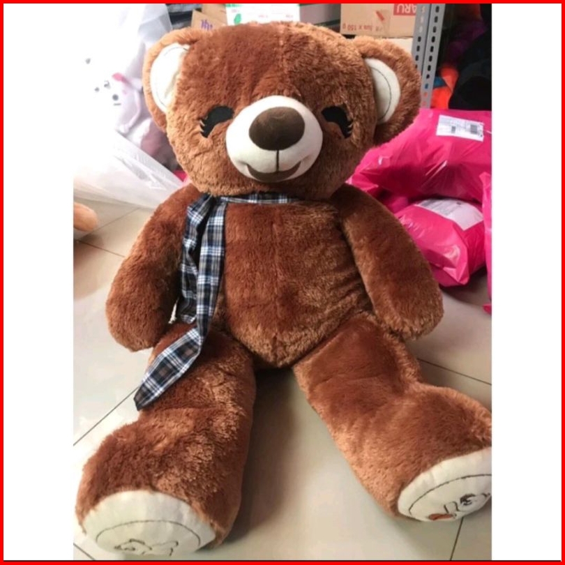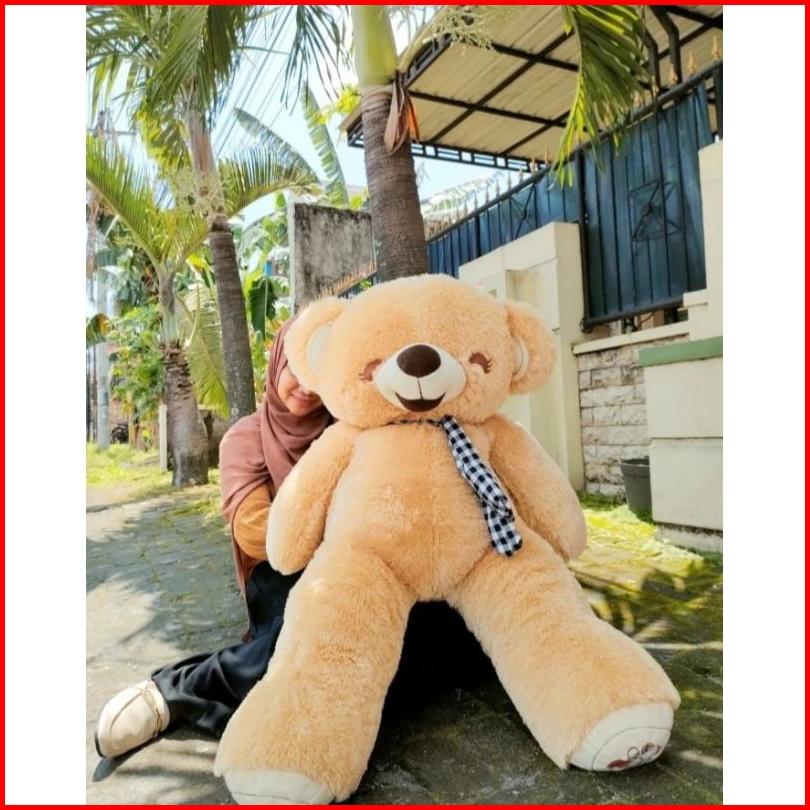 Boneka Teddy Bear Jumbo Smile Eyes Bordir Syal Boneka Lucu Lembut