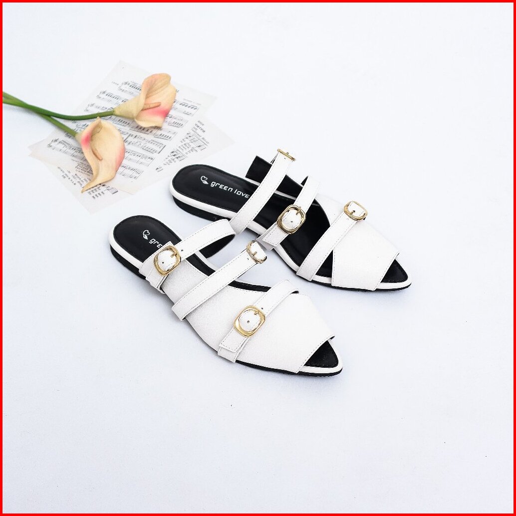 Green Love Sandal Slip On Mules Wanita Rebecca