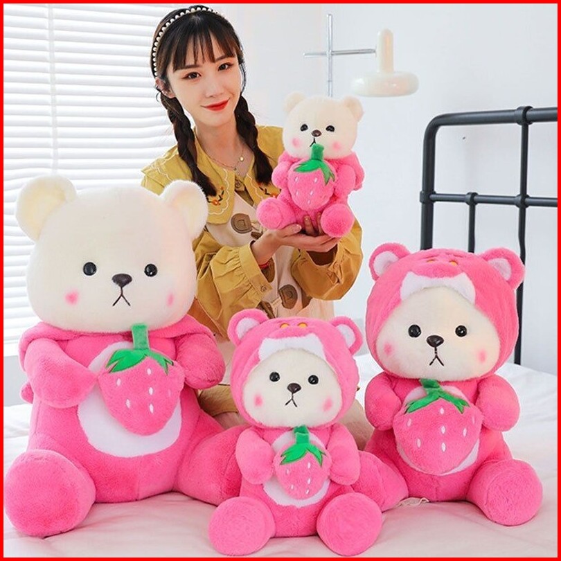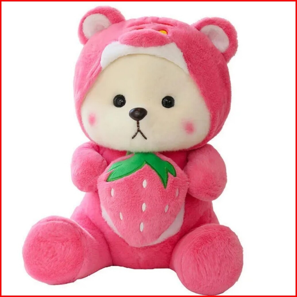 Boneka Teddy Bear Costum Lotso Hoodie Strawberry Hadiah Anak Ulang Tahun Kado Viral