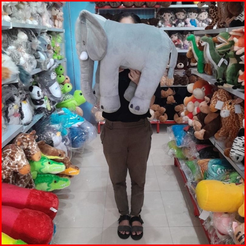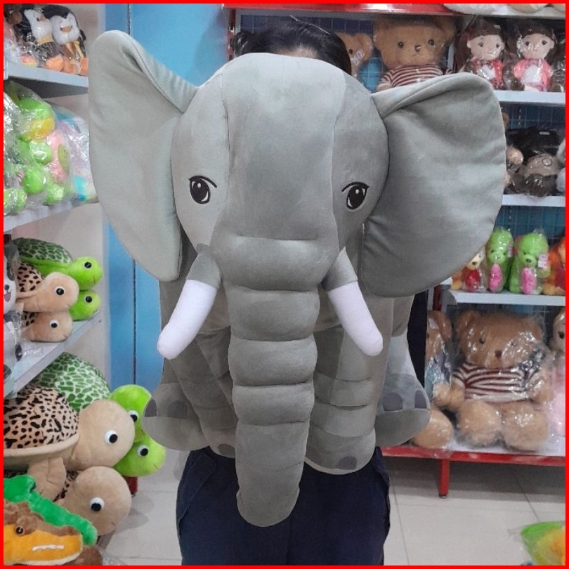 Boneka Gajah Besar Elephant Jumbo Abu-abu Bahan Halus Lembut