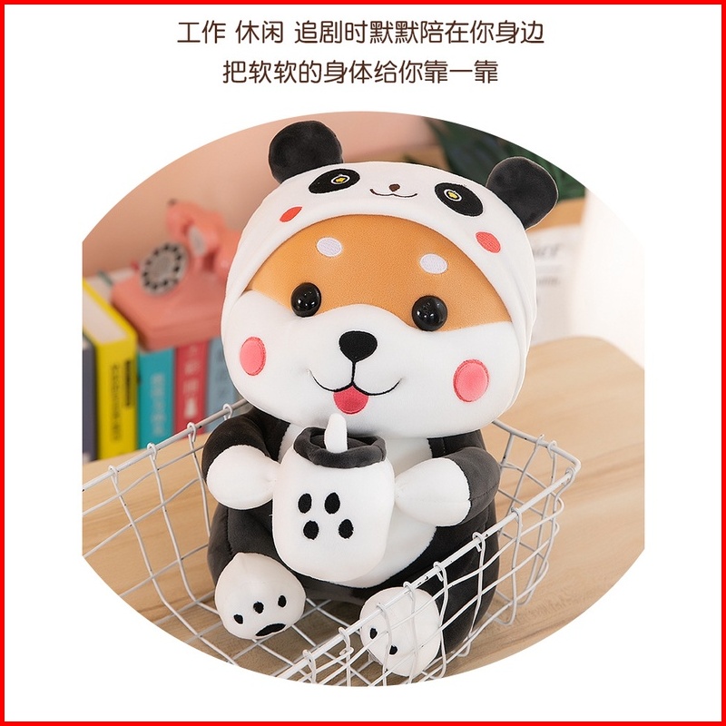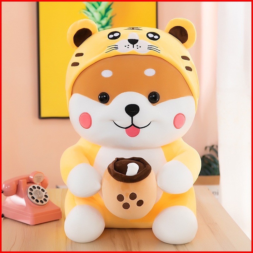 Boneka Shiba Pegang Bubble Tea Costume Lucu Super Jumbo 55cm Bahan Plush