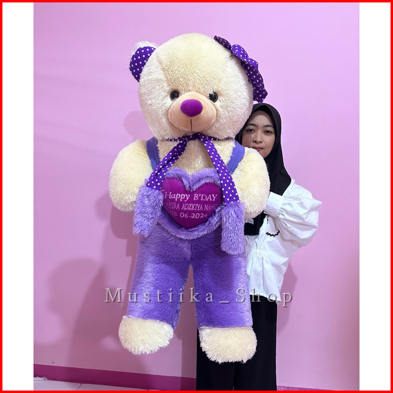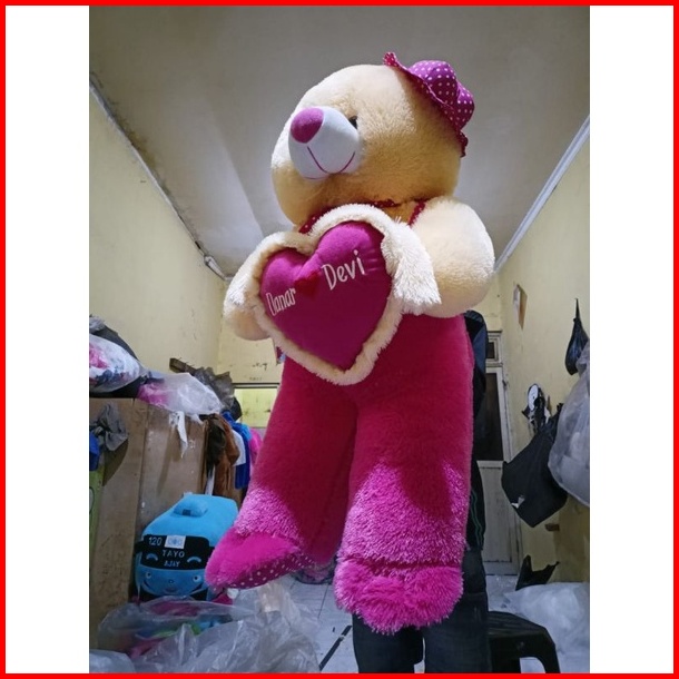 Boneka Beruang Teddy Bear Jojon Jumbo 100cm Teddy Bear Topi Syal Costum Nama