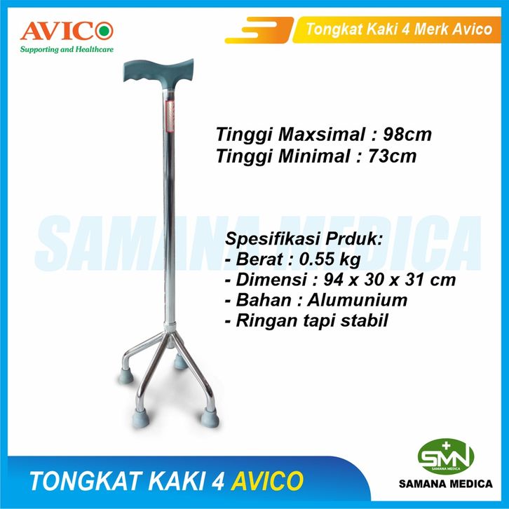 TONGKAT KAKI 4 MERK AVICO TONGKAT JALAN ORANG TUA TERAPI JALAN KUAT DAN RINGAN