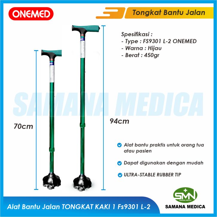 ALAT BANTU JALAN TONGKAT KAKI 1 FS9301 L-2 ONEMED TONGKAT BANTU JALAN WALKING STICK HIJAU