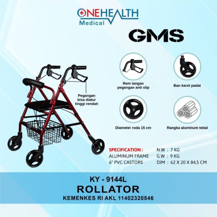 ROLLATOR WALKER RODA ONEHEALTH KY9144L ALAT BANTU JALAN