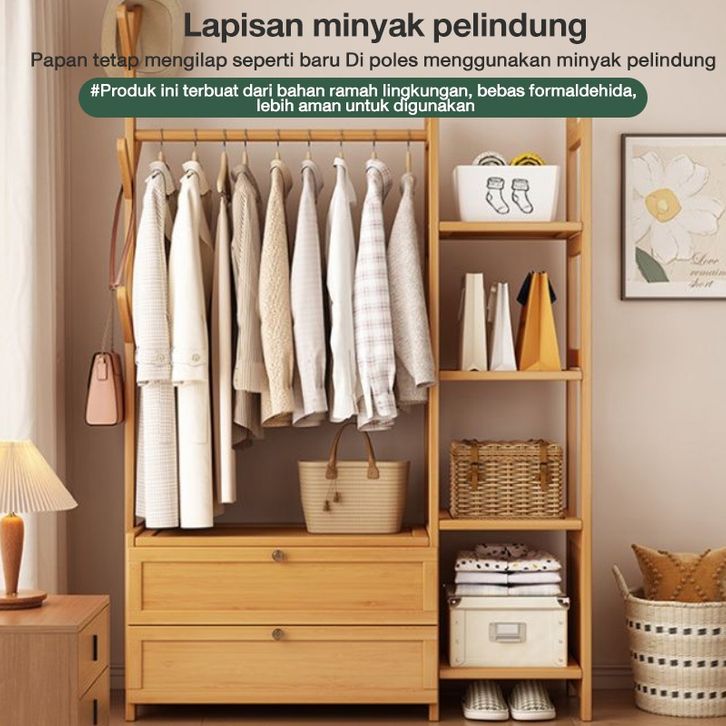 Rak Minimalis Stand Hanger Kayu Serbaguna Gantungan Baju