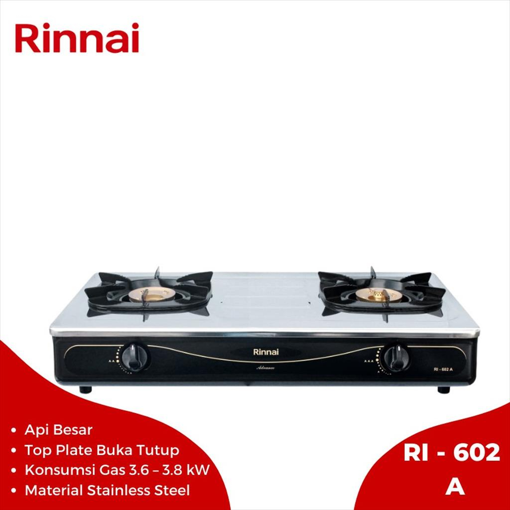 KOMPOR GAS RINNAI 2 TUNGKU STAINLESS STEEL RI-602A - KOMPOR 2 TUNGKU STENLIS TERBARU TANPA DP OFFICIAL STORE
