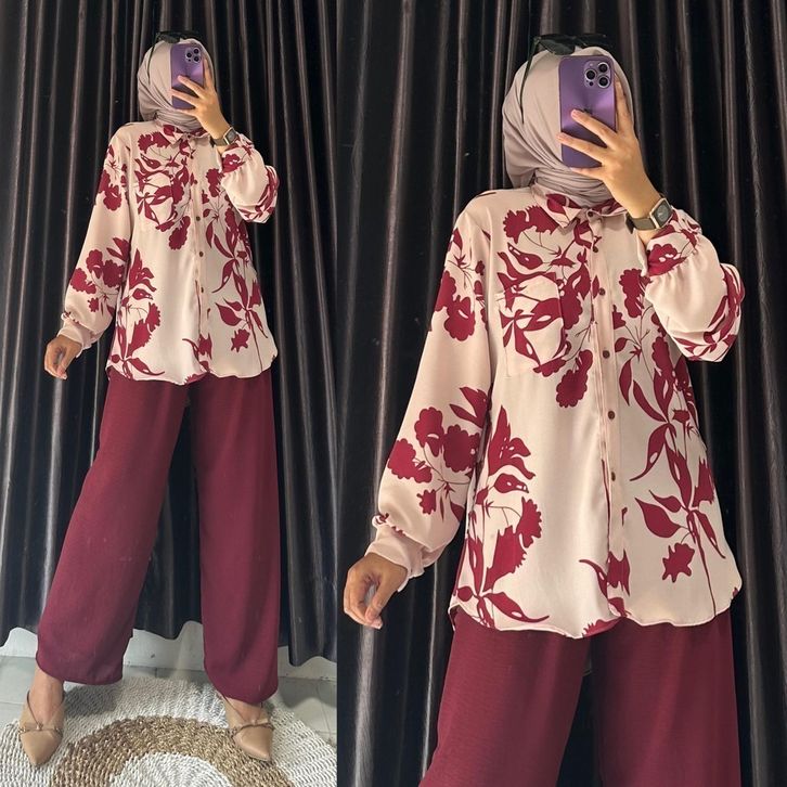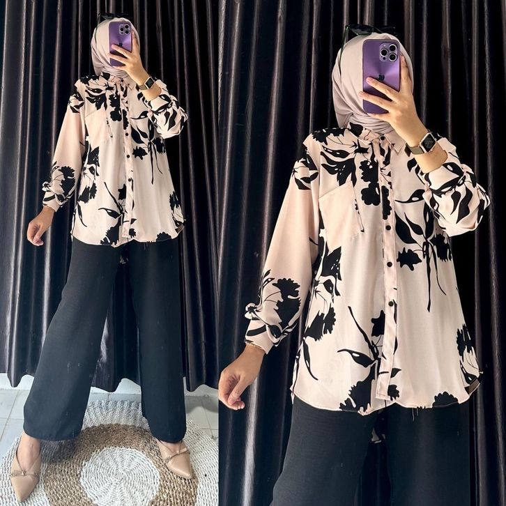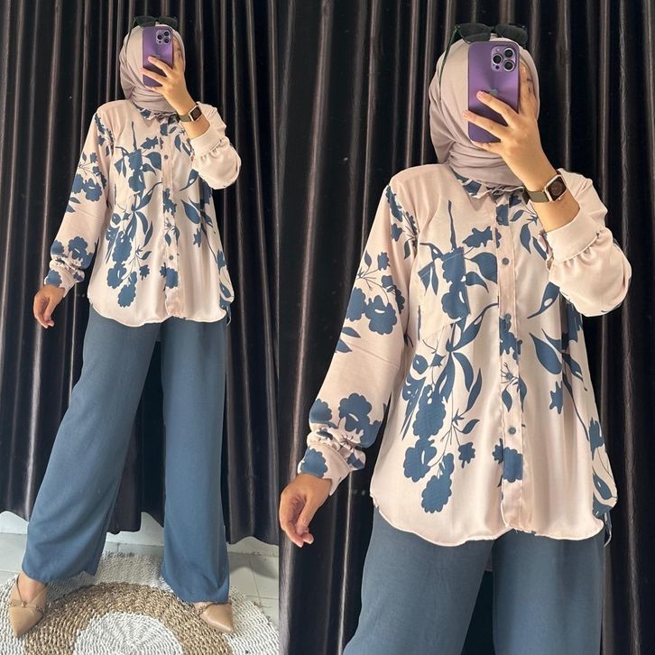 BLOUSE One Set Wanita Crinkle Airflow Premium Adem Tidak Panas Korean Style Casual Elegan Kekinian
