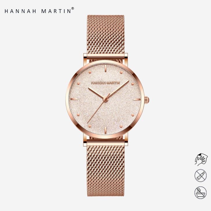 HANNAH MARTIN JAM TANGAN WANITA MODE BISNIS DISPLAY KUARSA TALI JALA TAHAN AIR ORIGINAL BEST SELLER