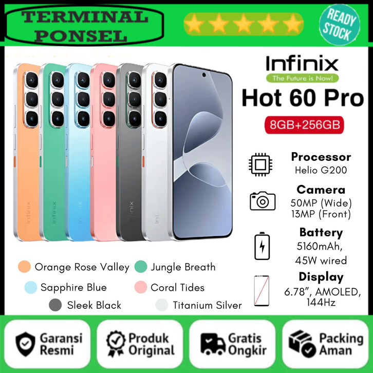 Infinix Hot 60 Pro 8/256GB NFC - Extended RAM 16GB - Helio G200 - 6.78 144Hz AMOLED - 50MP - 5160mAh