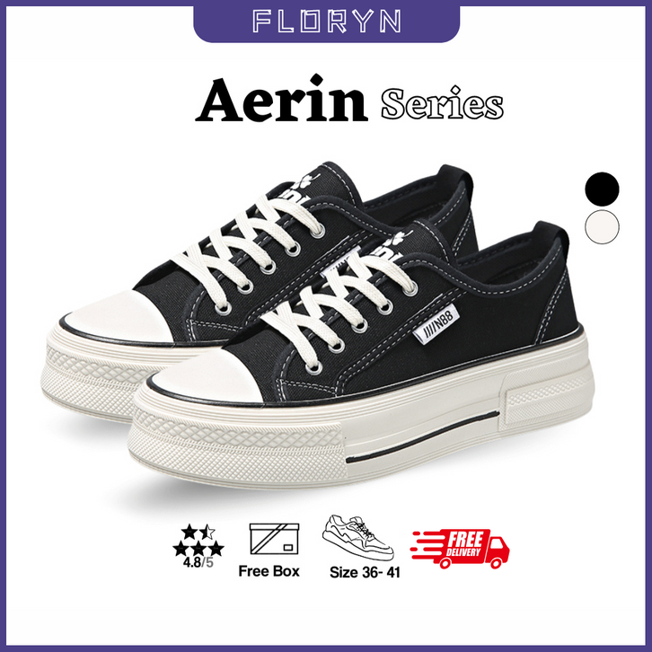 SEPATU SNEAKERS WANITA ORIGINAL TERBARU AERIN 9178 CANVAS SNEAKER CEWEK DEWASA CASUAL KOREA KEKINIAN HITAM PUTIH IMPORT