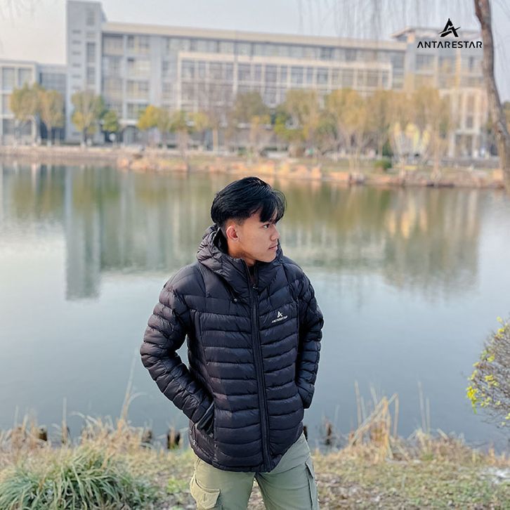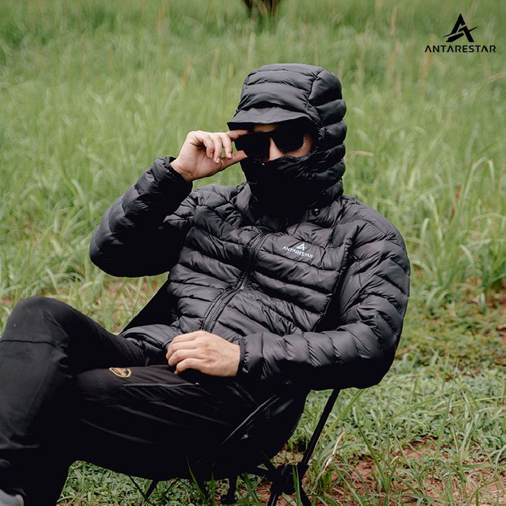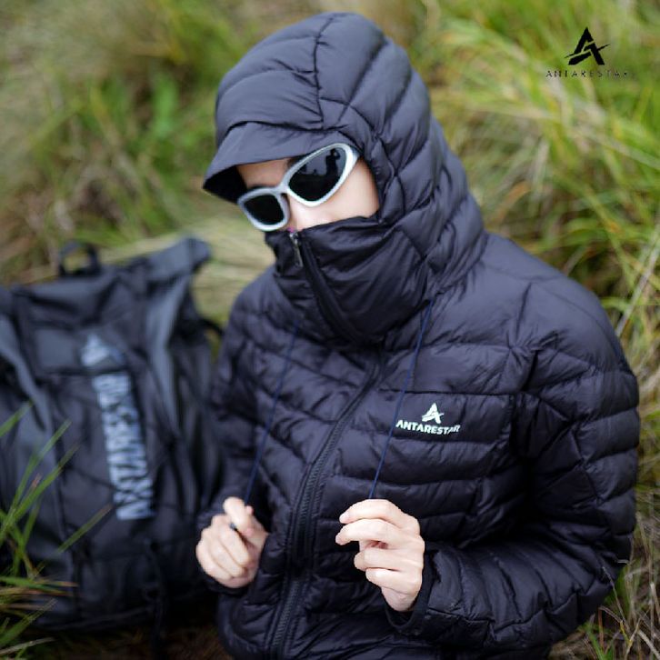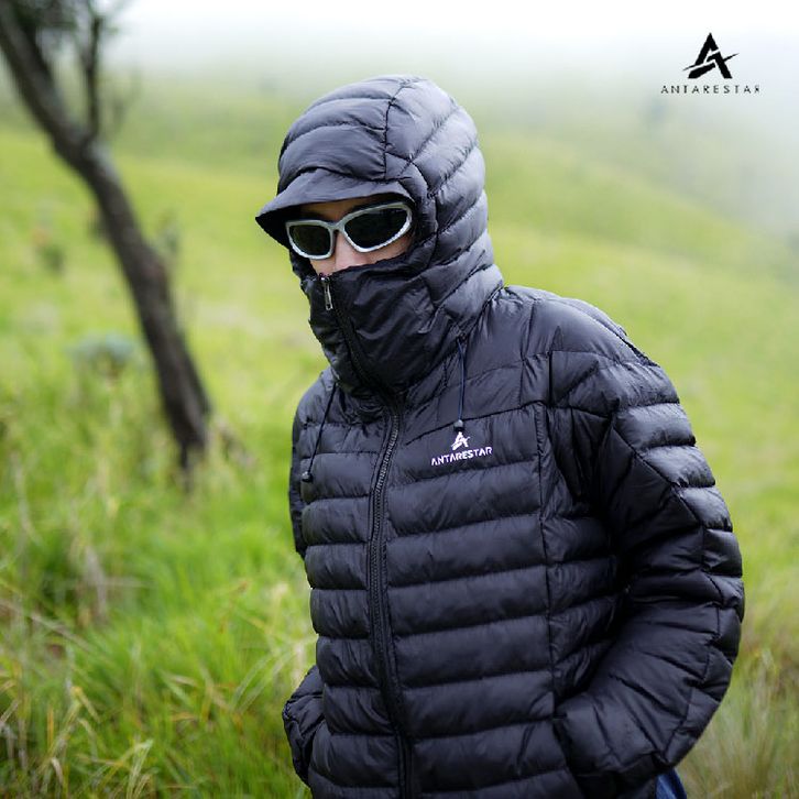 Jaket Gorpcore Baluran terbuat dari perpaduan material parasut di bagian luar dan dakron di bagian dalam. Material paras