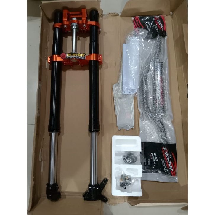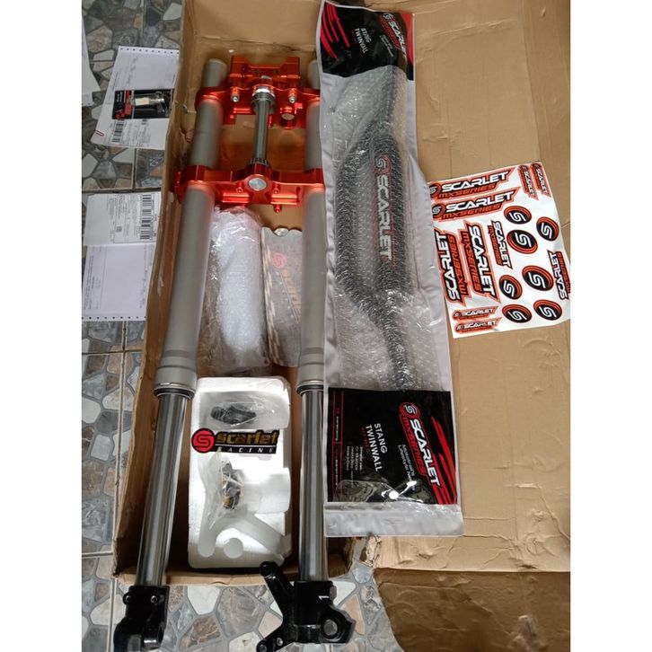 Sokbeker Shock Upside Down Depan USD SCARLET DOUBLE ADJUSTER KLX FULL CNC+STANG TWINWALL PROMO TERMURAH