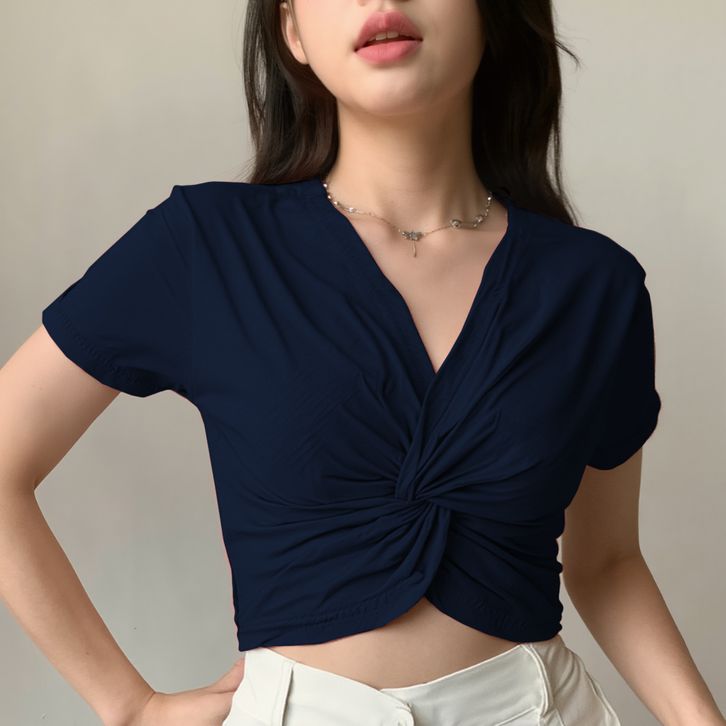 Kaos Wanita Crop Top Twist V-Neck - Atasan Wanita Polos Crop Top 6043