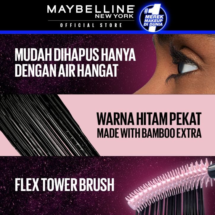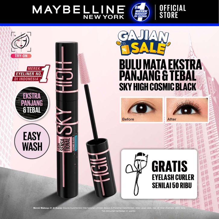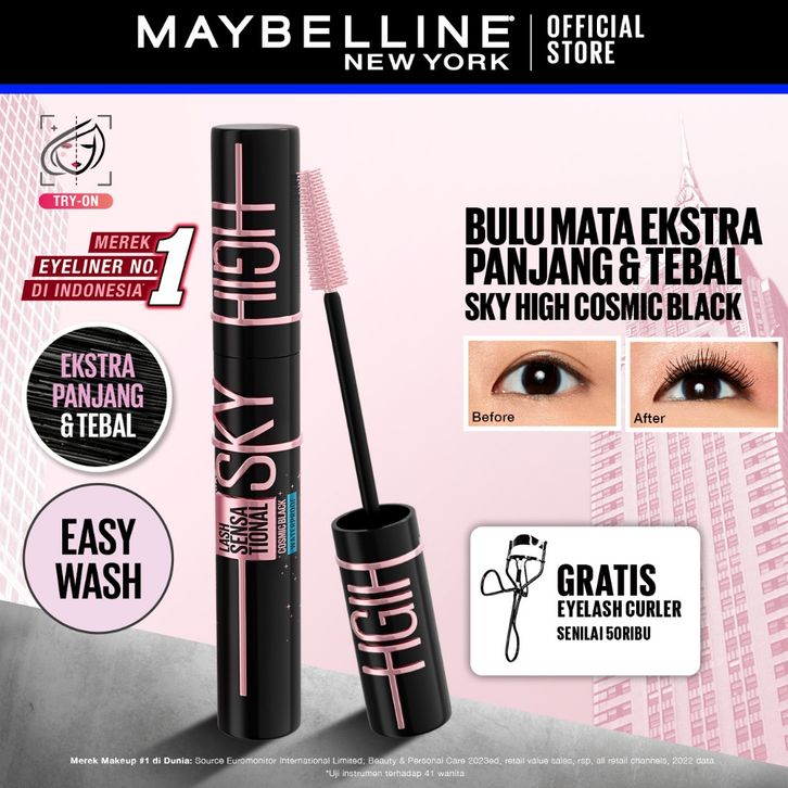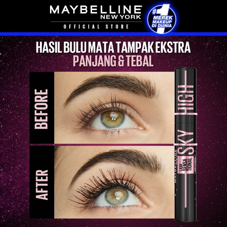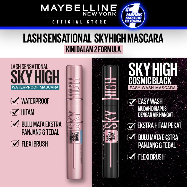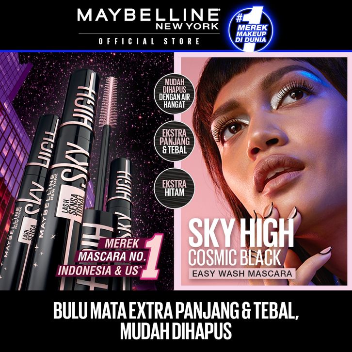MAYBELLINE OFFICIAL Sky High Cosmic Black Easy Wash Mascara 6ml - Maskara Eye Make up Black Bulu Mata Panjang Tebal Tah