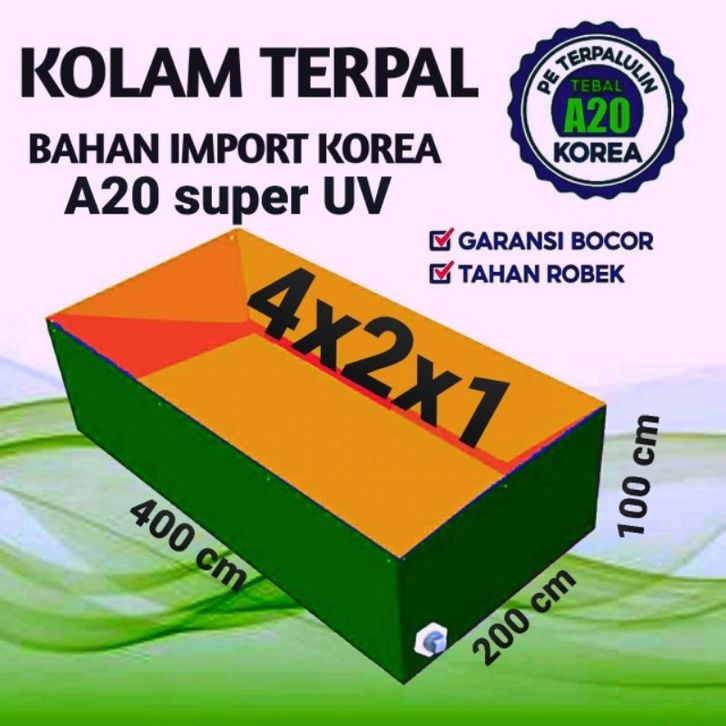 Terpal Kolam Terpal Ikan Kotak A20 Hijau mas Korea 400x200x100/200x400x100/4x2x1/2x4x1 Kolam Terpal Bahan Korea Untuk B