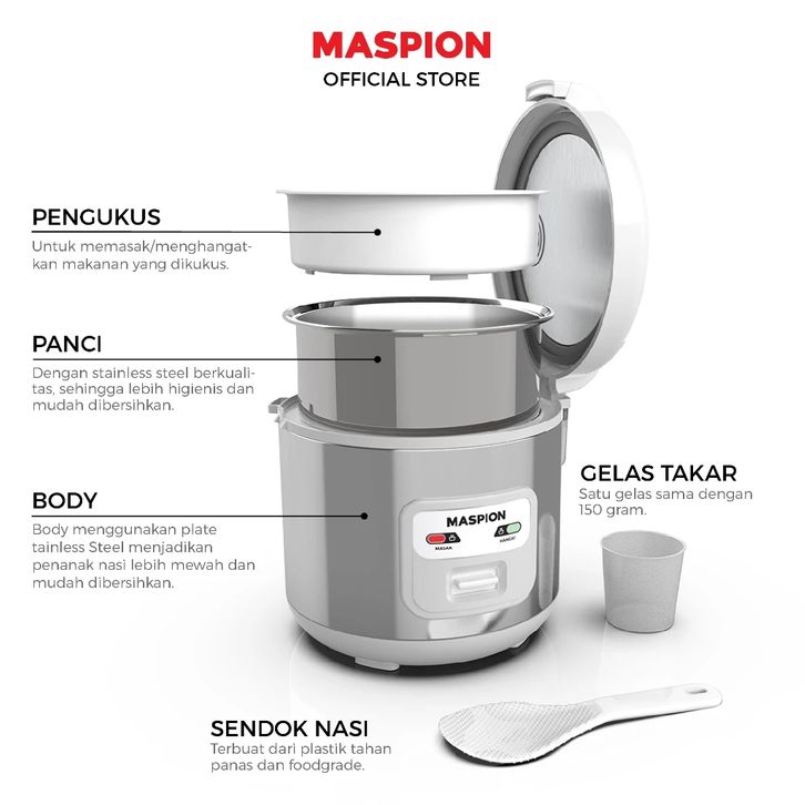 MAGICOM MASPION RICE COOKER MAGIC COM 1 LITER MRJ 1003 STAINLESS STEEL STENLIS RESKUKER PENANAK NASI MEJIKOM 1L MURAH