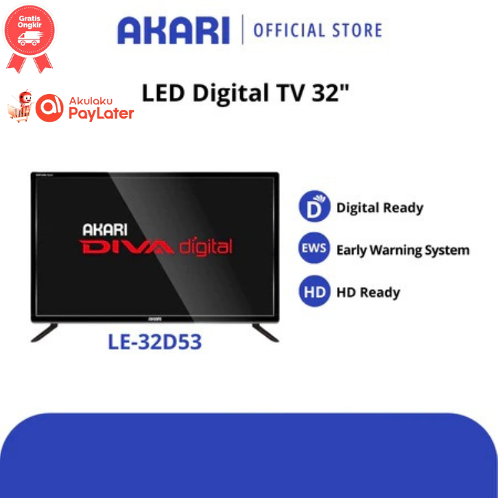 Tv Smart 32 Inch LE-32D53 DVBT-2 Akari Official Store - Televisi Digital Led