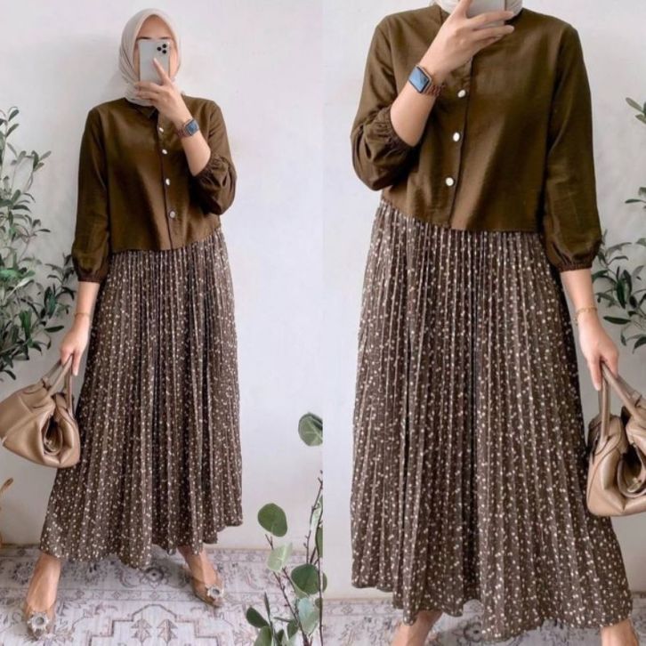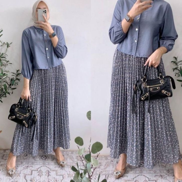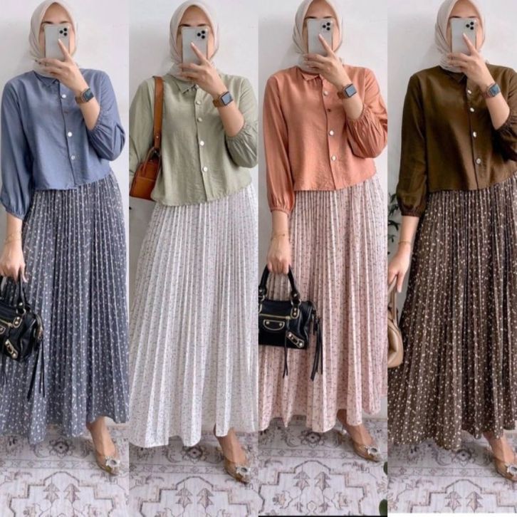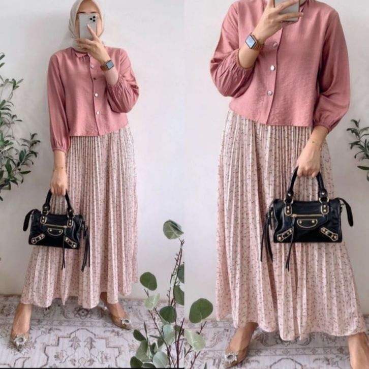 GROSIR SETELAN DRESS KEKINIAN WANITA ONE SET KEMEJA ROK WANITA acolh