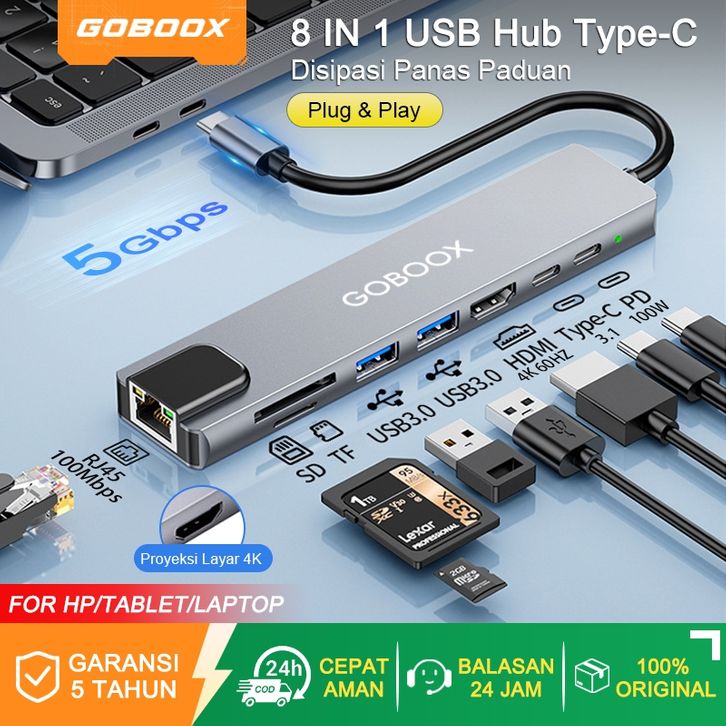 OTG GOBOOX 8-IN-1 Usb Hub Type C Hdmi 4K60Hz SD/TF Card Reader Type C Converter Usb C To Hdmi Aluminium PD100W RJ45 LAN
