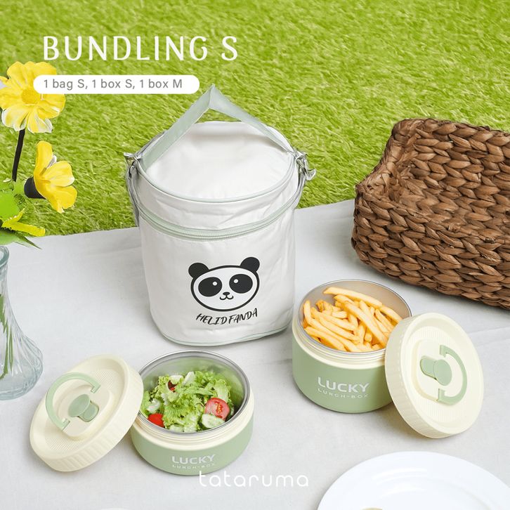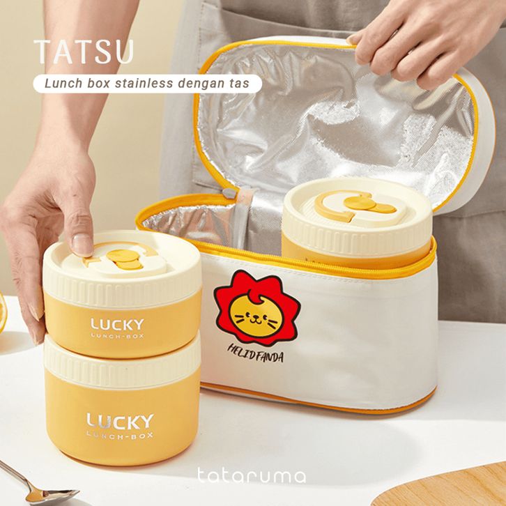 Lunch Box Kotak Bekal Tahan Panas Stainless 304 dengan Tas Piknik Sekolah Kerja Meal Bag