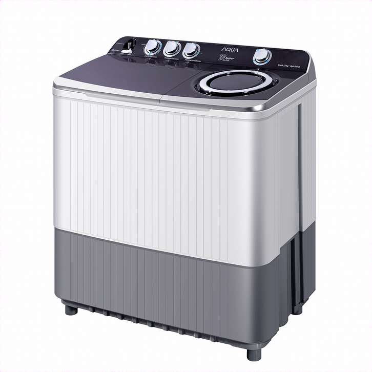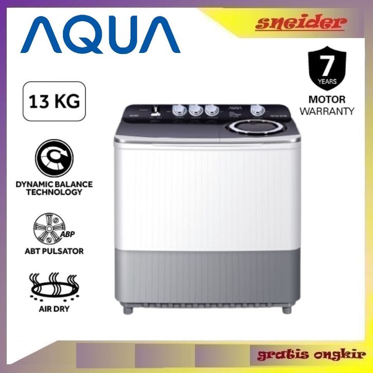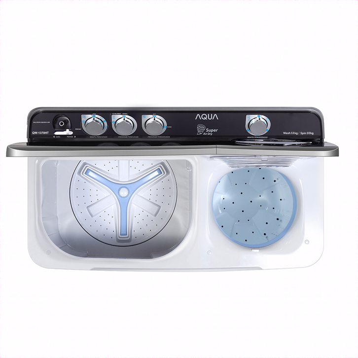AQUA Mesin Cuci Twin Tube 13 Kg QW-1370HT - Dynamic Balance Technology - ABT Pulsator - Air Dry - Stainless Steel