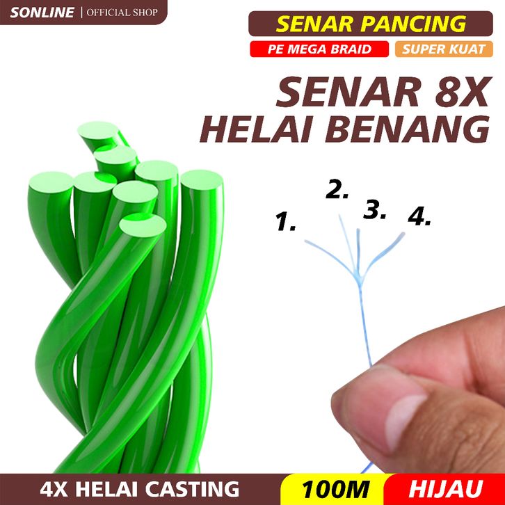 SONLINE - Senar Pancing PE Mega Braid Fishing Line Senar Pancing X4 Braided Fishing Line 100M Warna