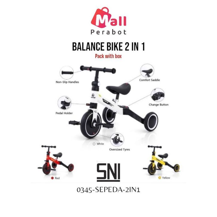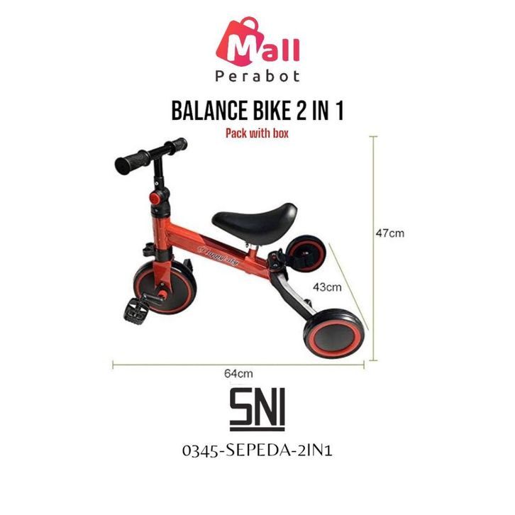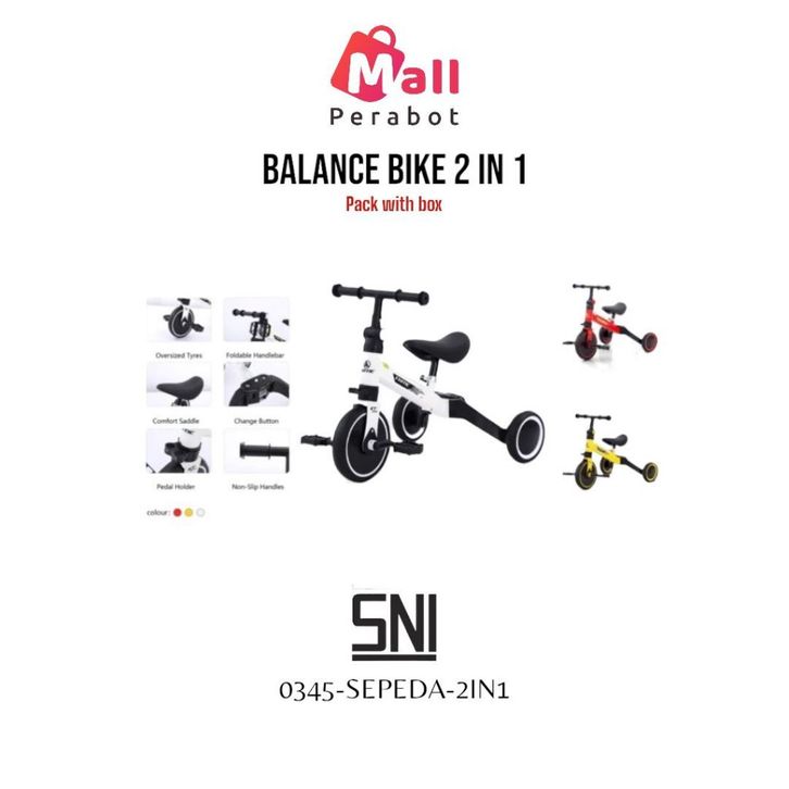 Mall Perabot Mainan Balance Bike 2 in 1 Sepeda Anak 3 Roda Dengan Pedal Kereta Keseimbangan Anak