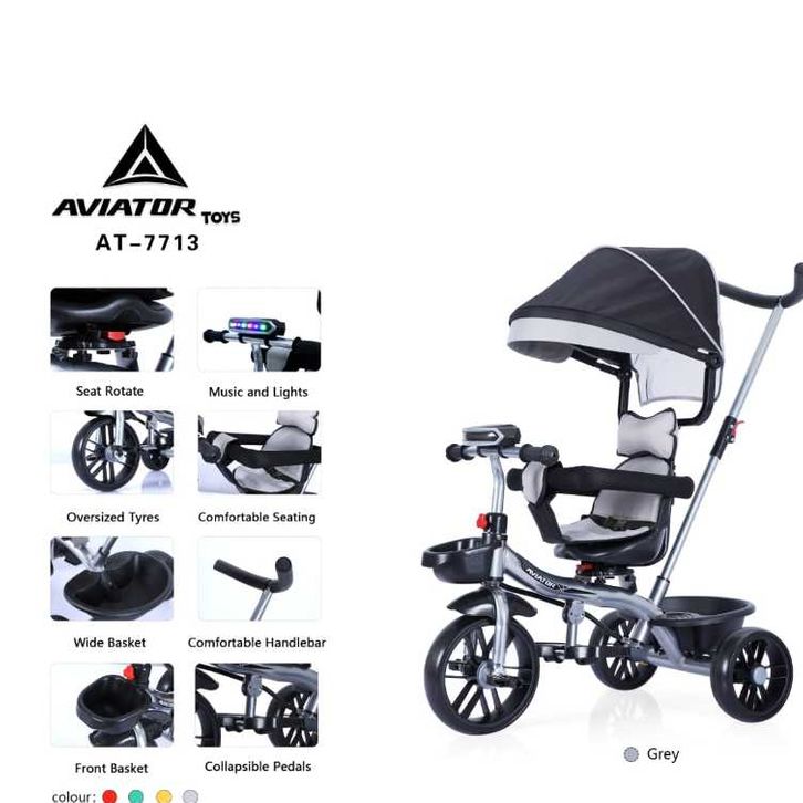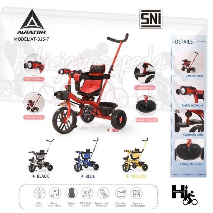 AVIATOR Sepeda Anak RODA TIGA 7711 sepeda stroller fitur MUSIK / kursi 2 arah / tongkat setir /