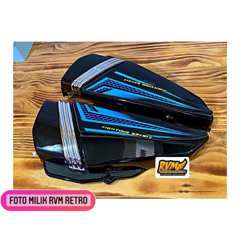 COVER SIDE TUTUP BOX AKI ACCU BOX OLI SAMPING RX KING 2004 HITAM STRIP BIRU NON ORI KUALITAS JOS